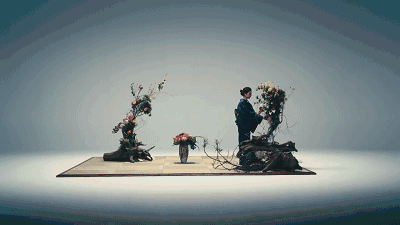 最后一则短片展现了日本的花道之艺,一名身着和服的花艺师,将两根枯燥的树干瞬间装点成了美丽的装饰。仅看画面,就相当精美!