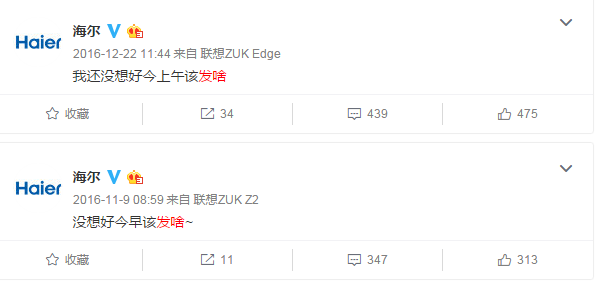 群怼王健林,携手上百个蓝v为晋嫣恋情操碎心来,一个企业的官方帐号还能脑洞多大?好奇的梅小花也扒开的@海尔的官方微博,孰料这魔性内容根本停不下来。