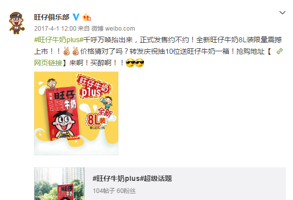 通过流量思维制造话题并与消费者沟通,愚人节已似乎已变成了旺仔测试市场效果的试金石,虽然只是个玩笑,刘子铭表示,看到大家这么喜欢,后期可能会真的推出相关日化产品。