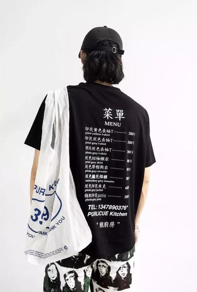 衣服正面印花是「白饭盒」,背面是「菜单」
