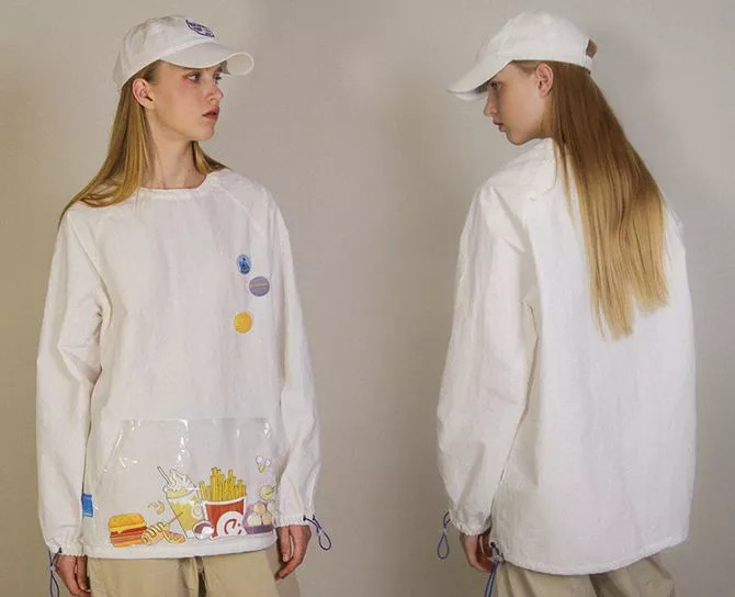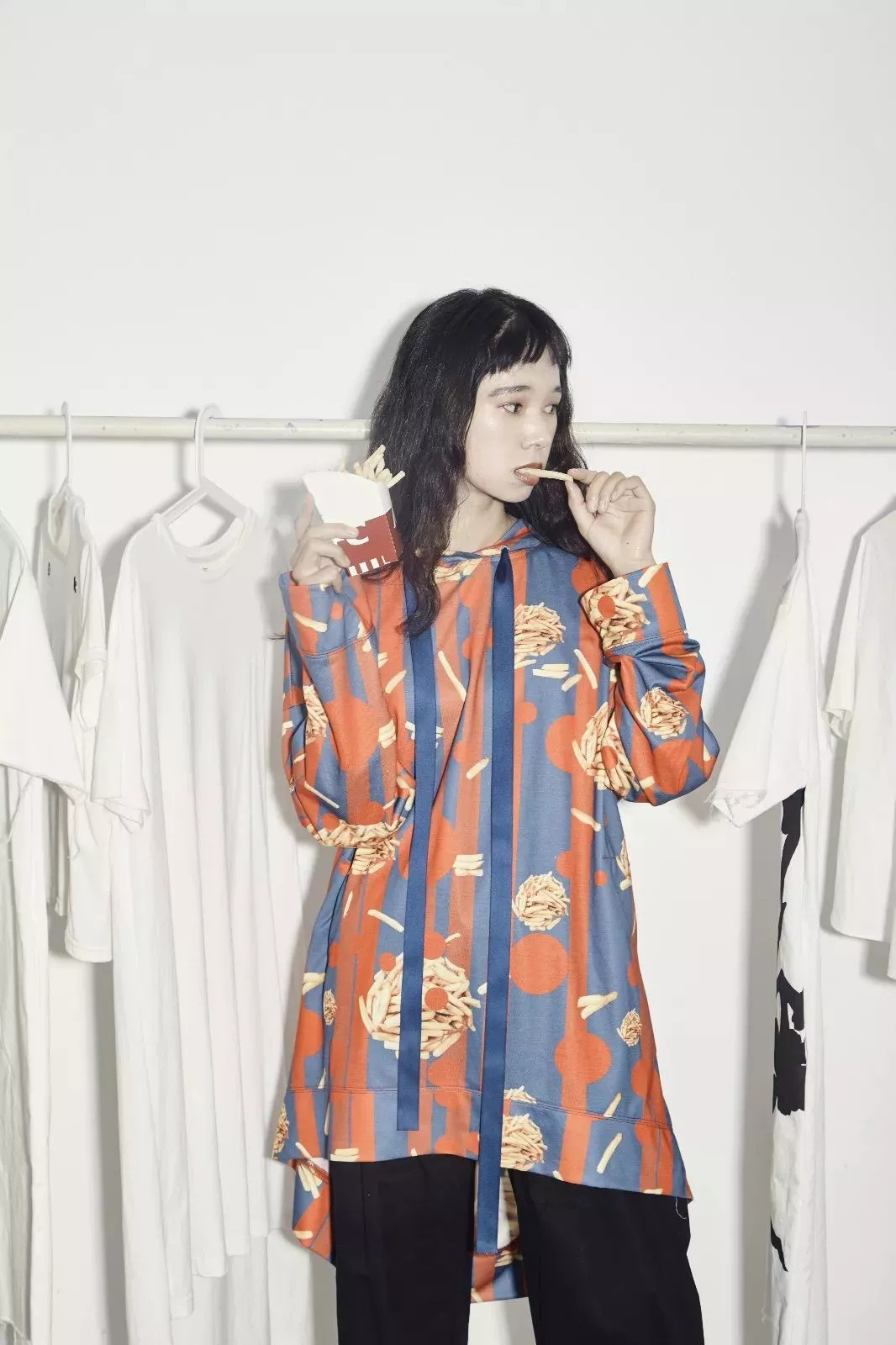 李文紫馨:我们希望通过多维度去展现"可以吃的时尚"这件事。首先是在sku上,囊括包包、衣服、帽子、配饰等。其次是在具体创意内容上,基于快乐肥宅的主题,将宅和食物的元素从不同的维度注入产品,有些设计元素是"拥有零食口袋的卫衣",有些是"又好看又好吃又好宅的枕头帽",还有"变成一份外卖的T恤","像快乐肥宅水的耳饰"等。