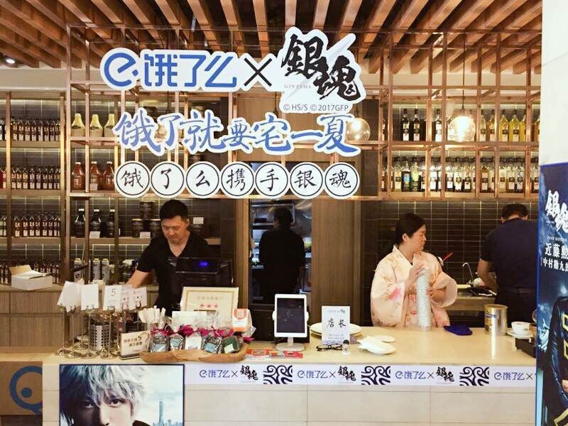去年7月,趁着《银魂》电影的热映,饿了么在上海、杭州两地开设 "阿银的甜品店",活动吸引了很多二次元粉丝的关注。