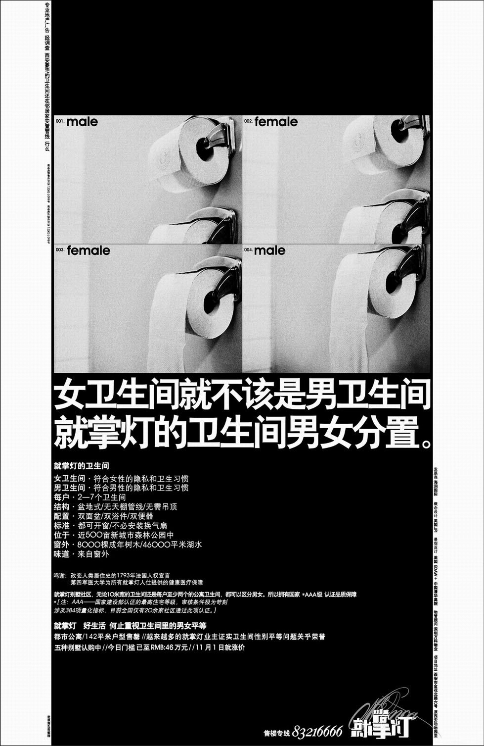 秋爽:完全不是个人偏好问题,电梯是一个典型的封闭空间。首先,人类在电梯里会倾向于不交流,这是进化决定的。其次,很多电梯里,手机信号不好,看不成手机。所以在我看来,电梯轿厢的广告媒体是一种拥有普遍阅读环境的媒介。长文案的广告在这种发布环境中,提供了更多的可读内容,和那些一句话都说不利落的大字报相比,反而有机会取得同场竞争的优势。