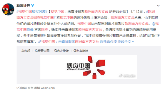 截至梅小花发稿,@视觉中国最新回应:确实没有直接联系欧洲南方天文台,这并非必须的。