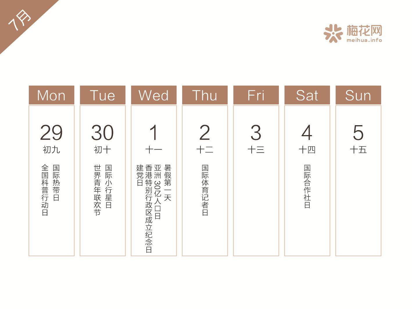 重要节点:建党日、香港特别行政区成立纪念日、接吻日、小暑、大暑、东京奥运会……