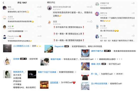 《诗词在召唤》上线后,XES教师天团的成员老师也把这首歌带到了学而思网校的网课课堂上,将这种寓教于乐的教育方式引入一线教学场景。这首兼具知识性与音乐性的歌曲深得学生喜爱,迅速流行起来,更有不少学生自发组团前往各大音乐平台为天团打CALL。热情之下,《诗词在召唤》的QQ音乐评论迅速突破999+,并获得了QQ音乐新歌首页推荐。此外,歌曲在网易云音乐、酷狗音乐、全民K歌等平台也均有不俗的反响。