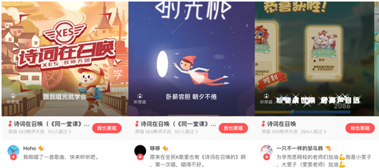图:许多学生在全民k歌跟着XES教师天团学唱《诗词在召唤》