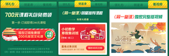图:流量反哺-《同一堂课》独家节目内容关联至学而思网校站内课程礼包