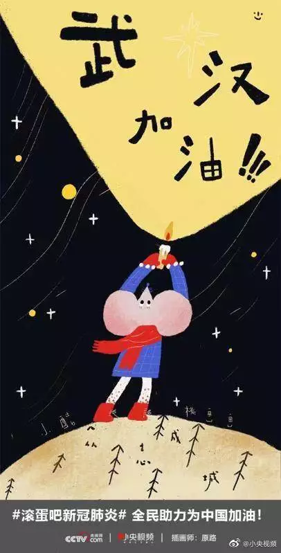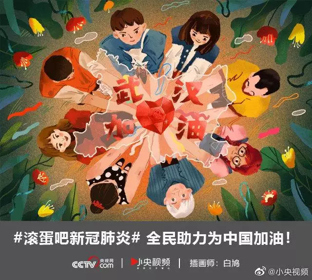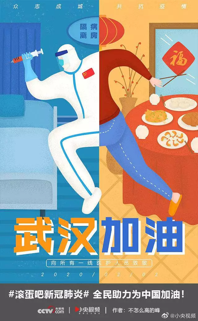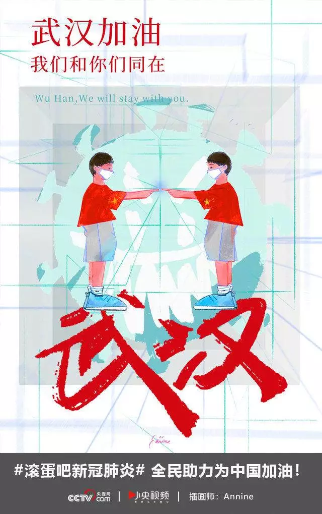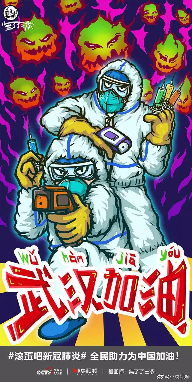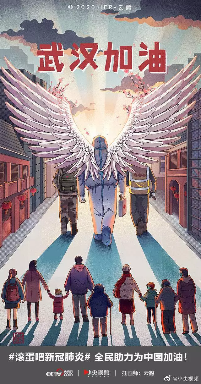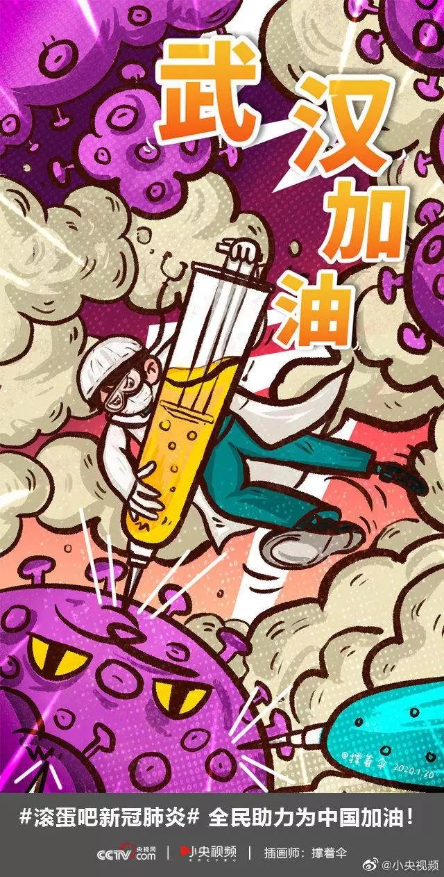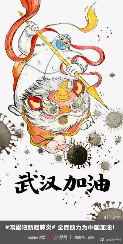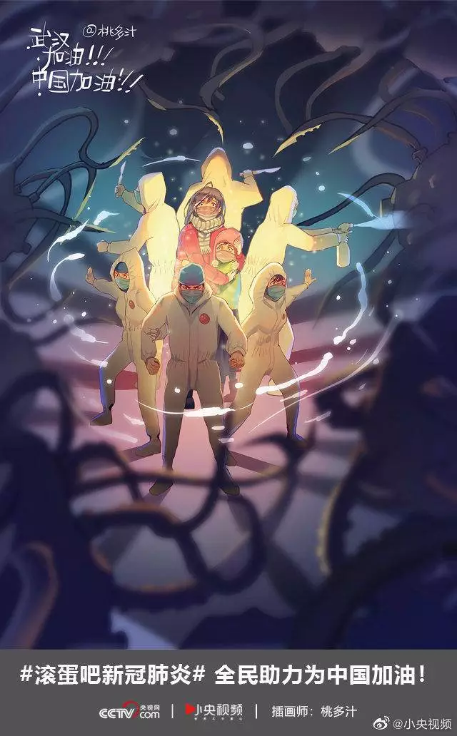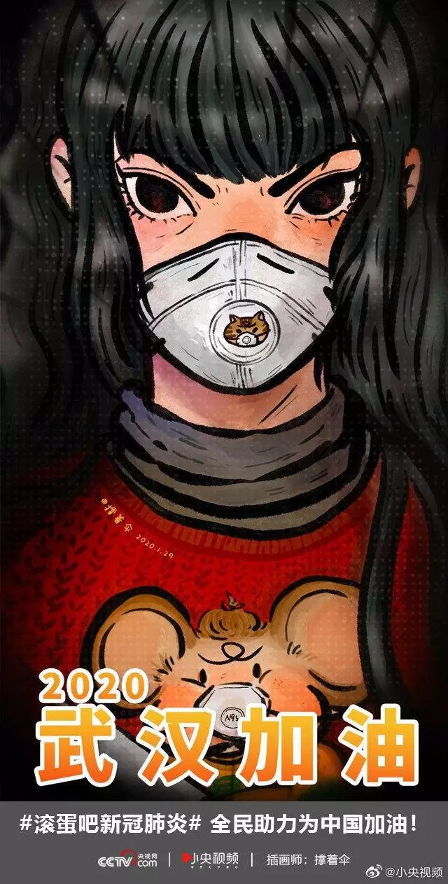 在央视网(@小央视频)发起的话题#滚蛋吧新冠肺炎#和网友自发的#武汉加油#等话题中,网友们产出了100+张优秀海报(插画/条漫等)为武汉加油!