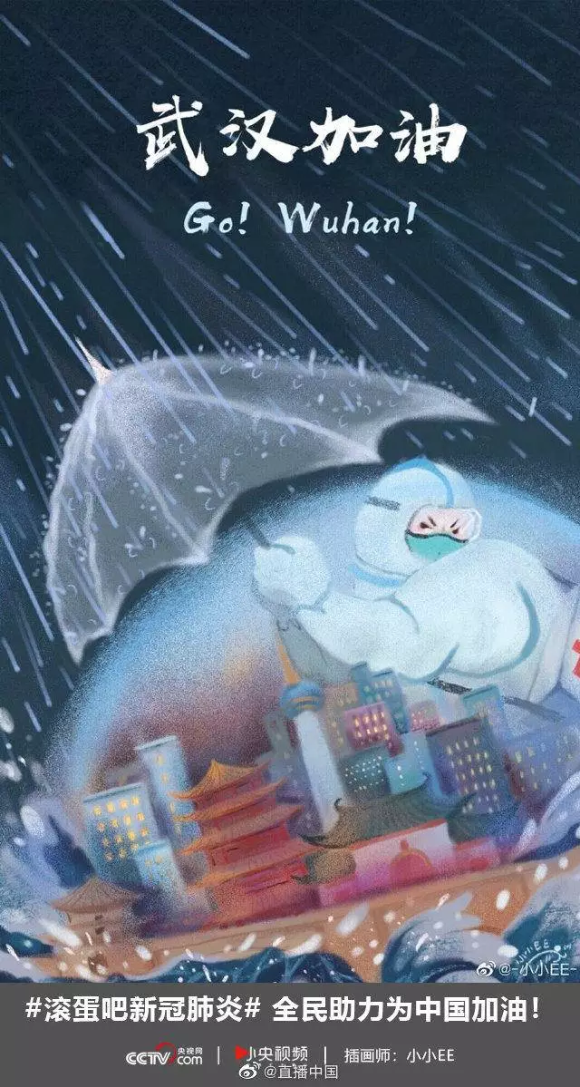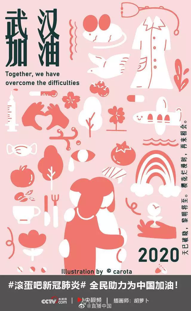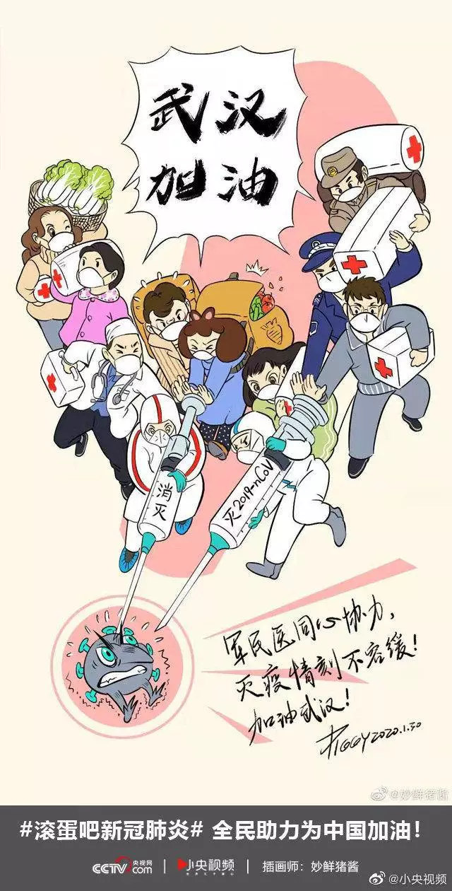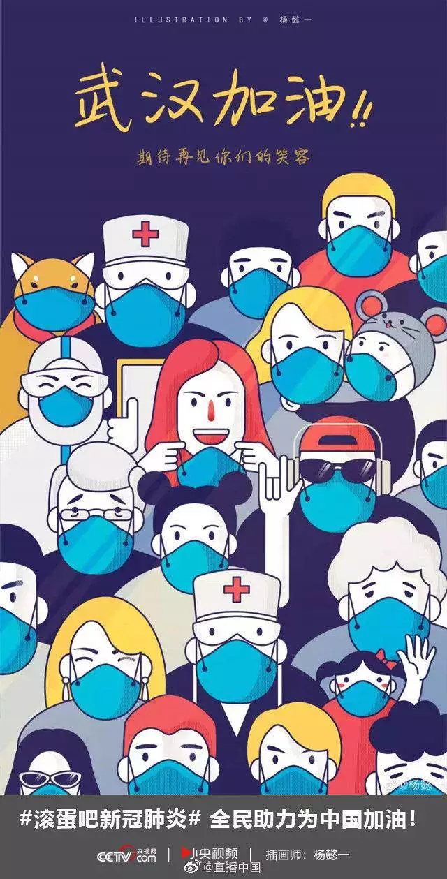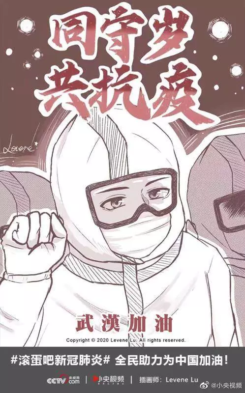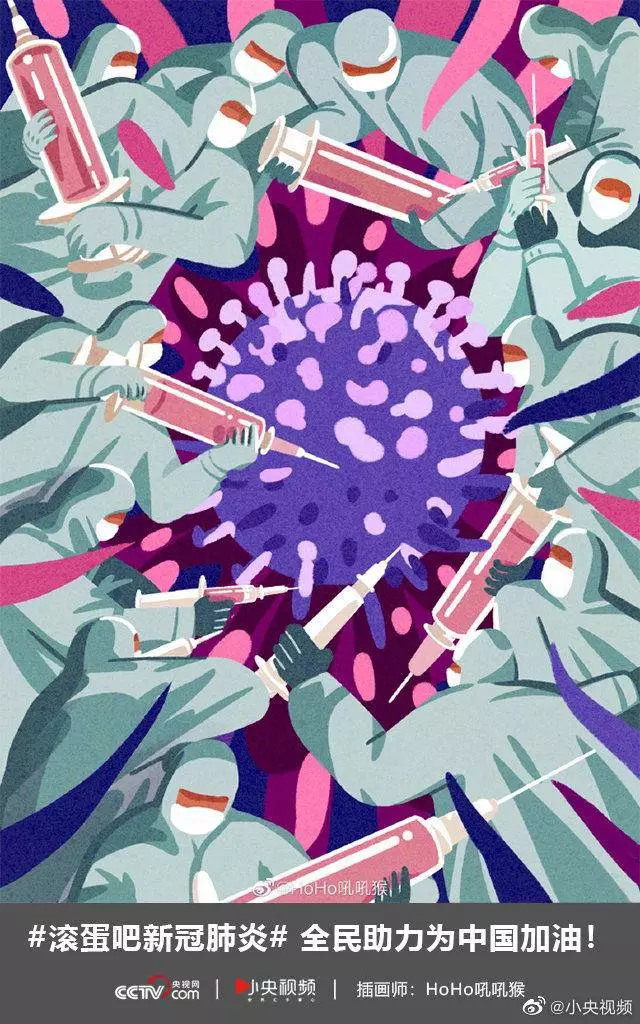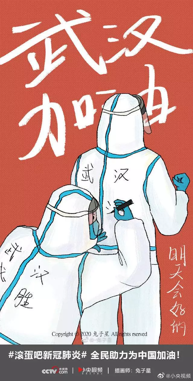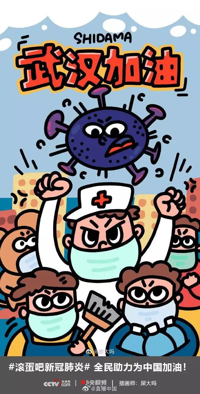在央视网(@小央视频)发起的话题#滚蛋吧新冠肺炎#和网友自发的#武汉加油#等话题中,网友们产出了100+张优秀海报(插画/条漫等)为武汉加油!