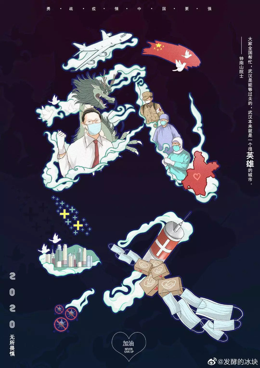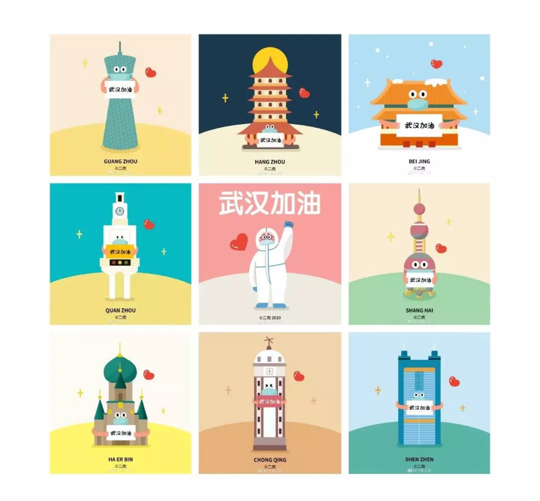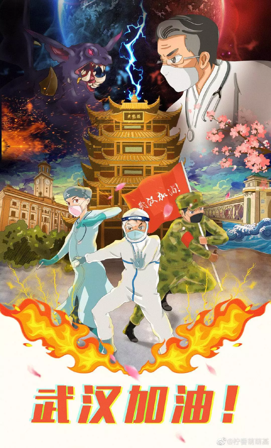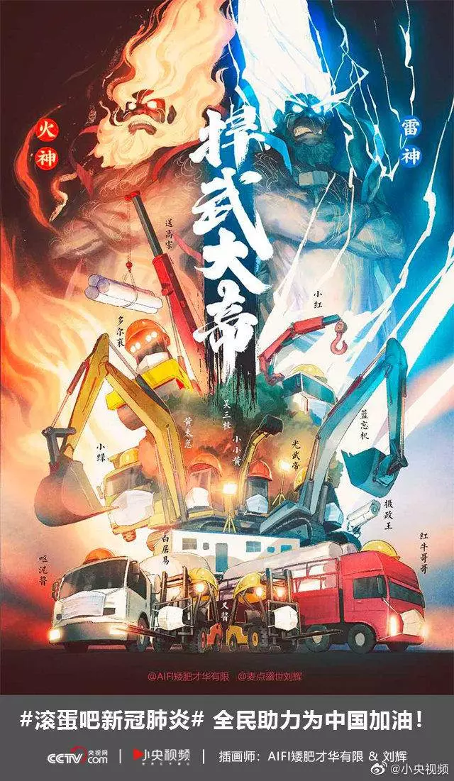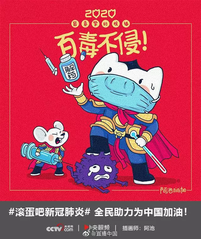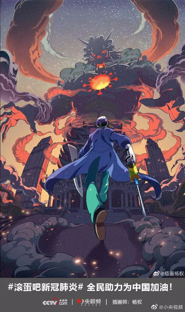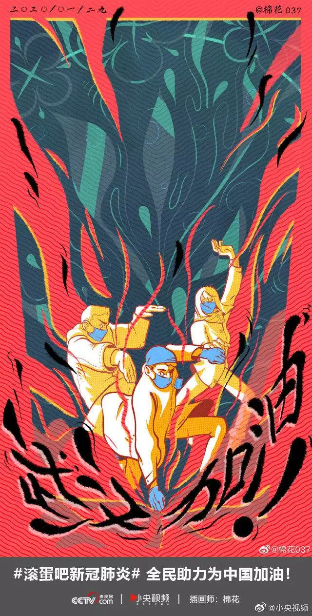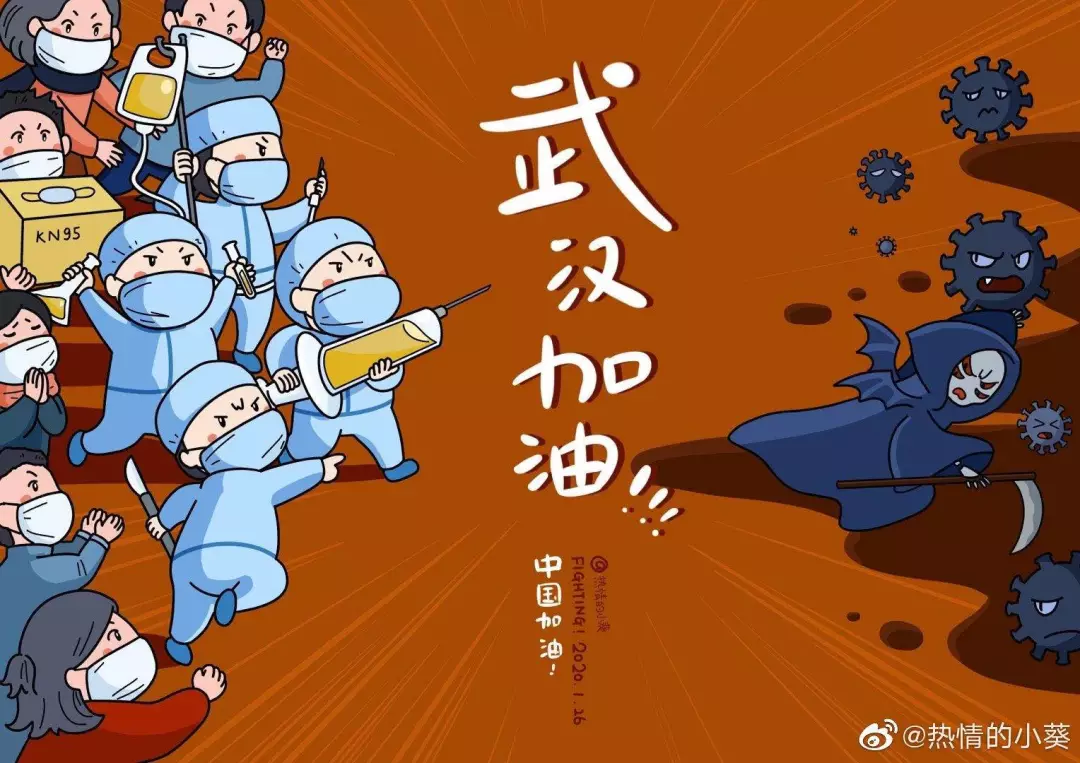 在央视网(@小央视频)发起的话题#滚蛋吧新冠肺炎#和网友自发的#武汉加油#等话题中,网友们产出了100+张优秀海报(插画/条漫等)为武汉加油!