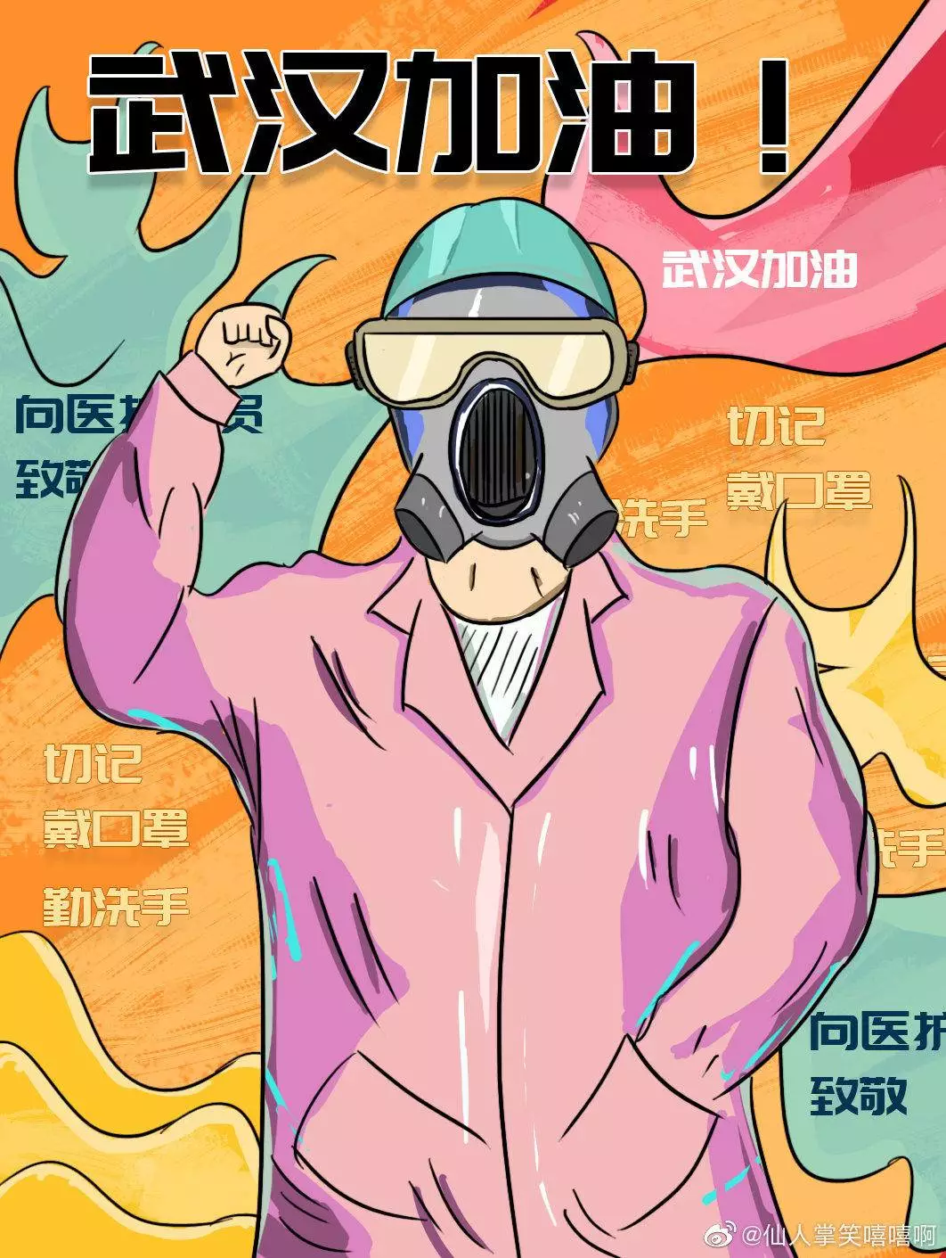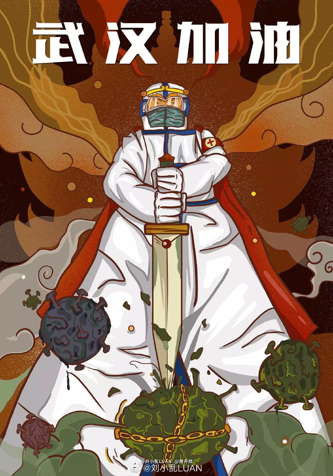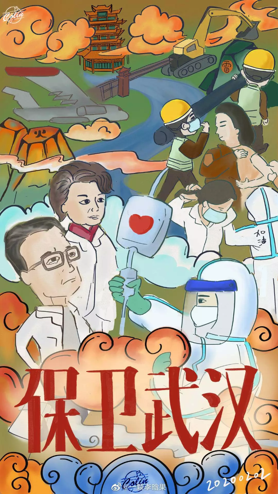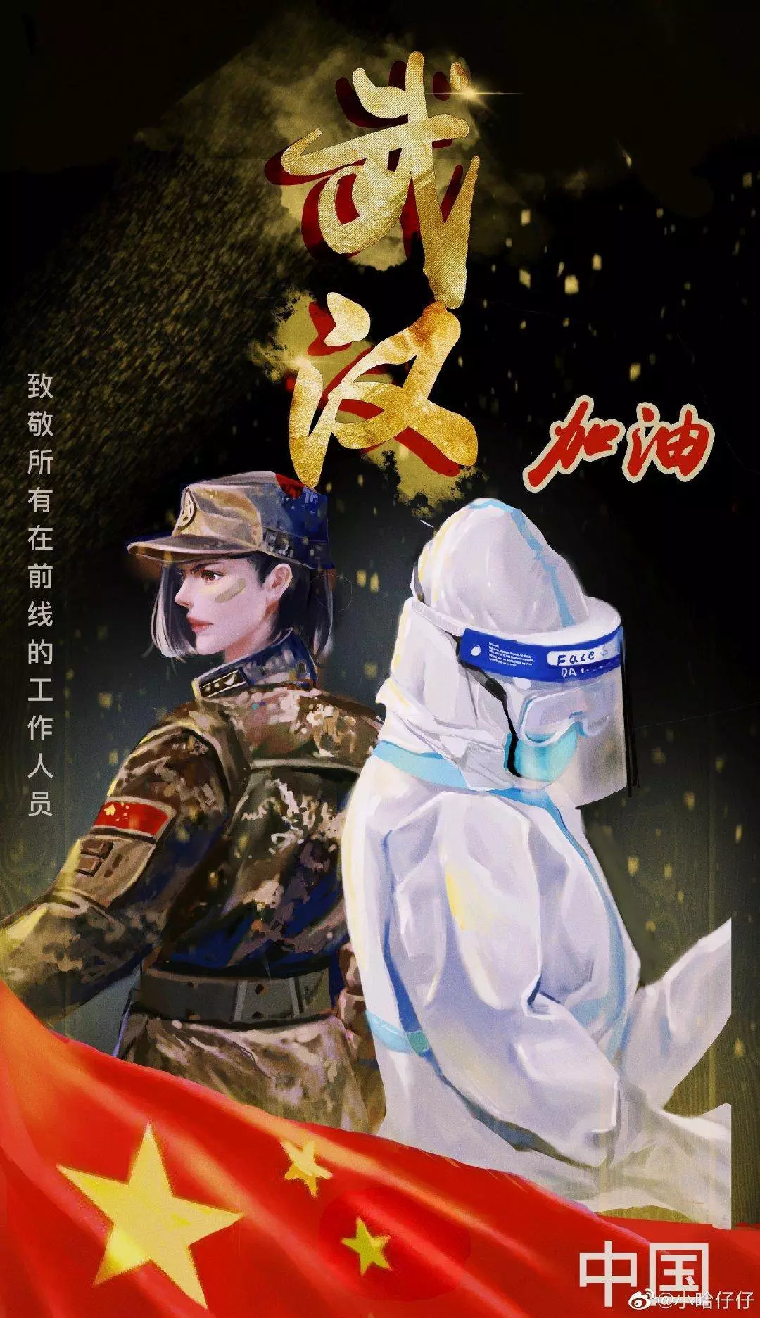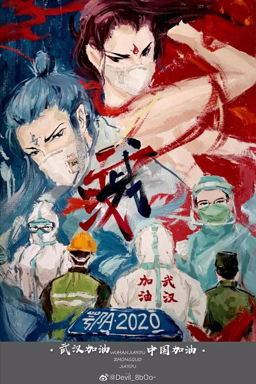 在央视网(@小央视频)发起的话题#滚蛋吧新冠肺炎#和网友自发的#武汉加油#等话题中,网友们产出了100+张优秀海报(插画/条漫等)为武汉加油!