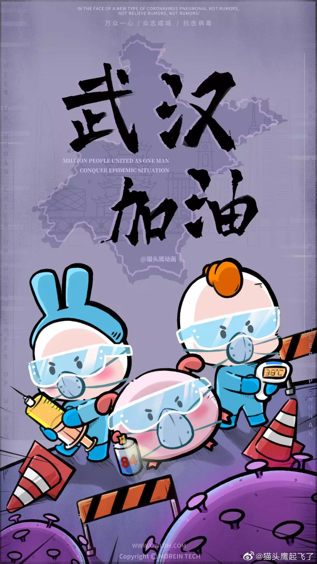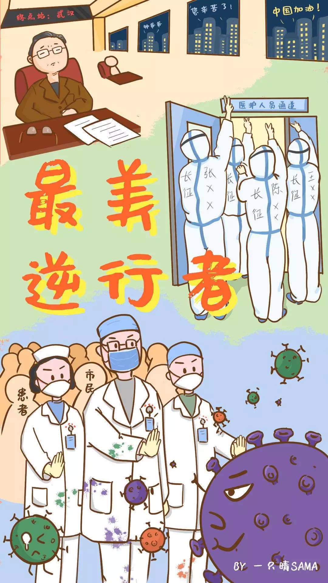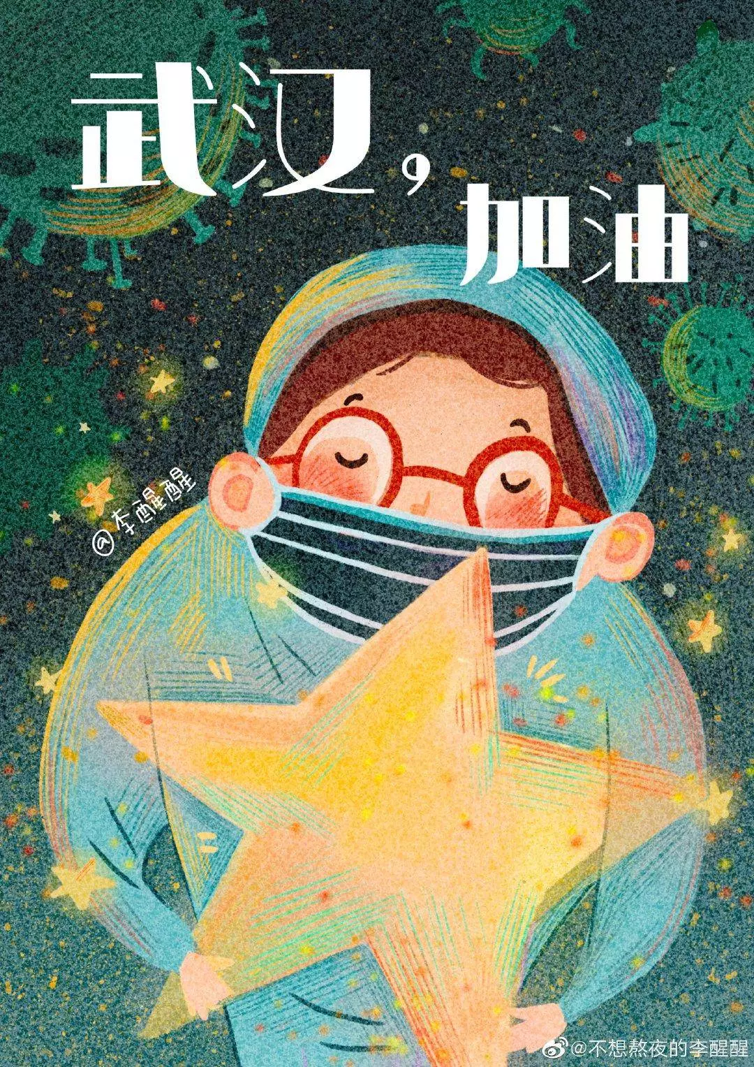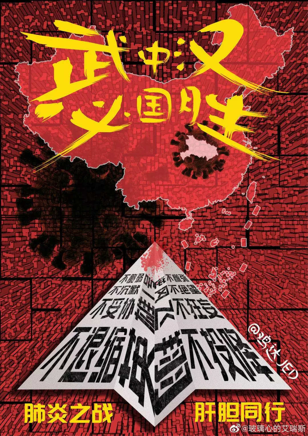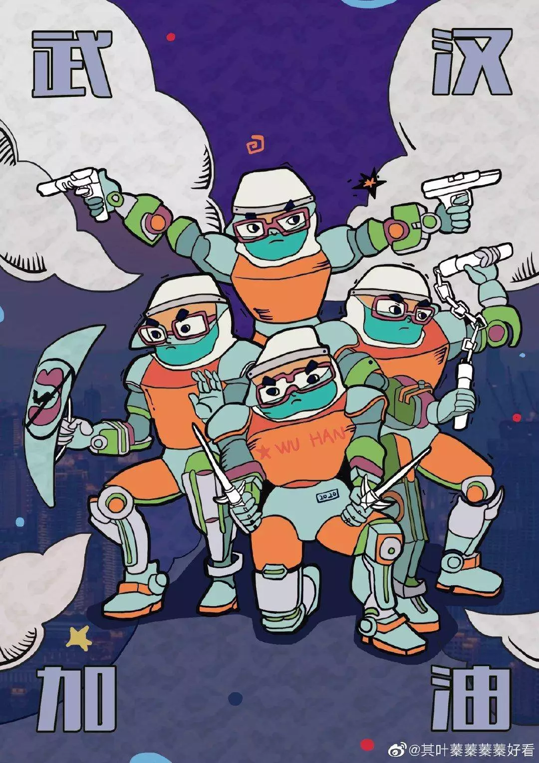 在央视网(@小央视频)发起的话题#滚蛋吧新冠肺炎#和网友自发的#武汉加油#等话题中,网友们产出了100+张优秀海报(插画/条漫等)为武汉加油!