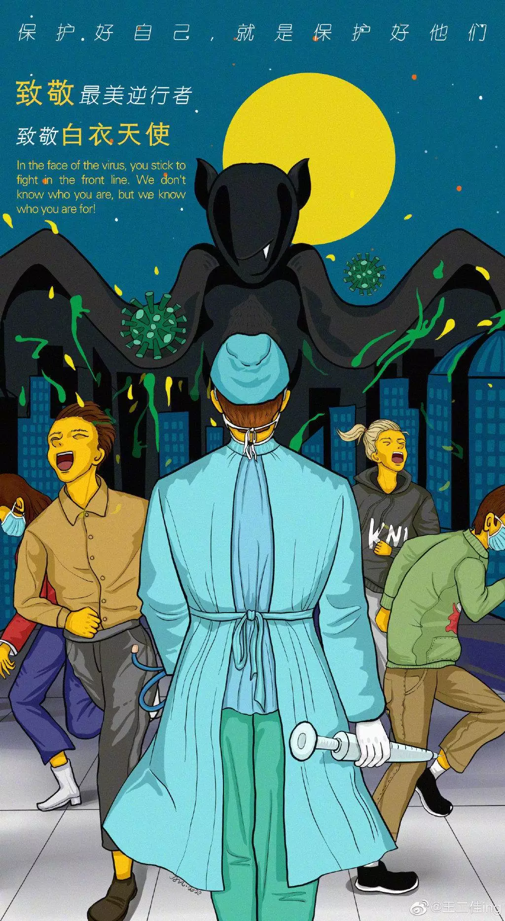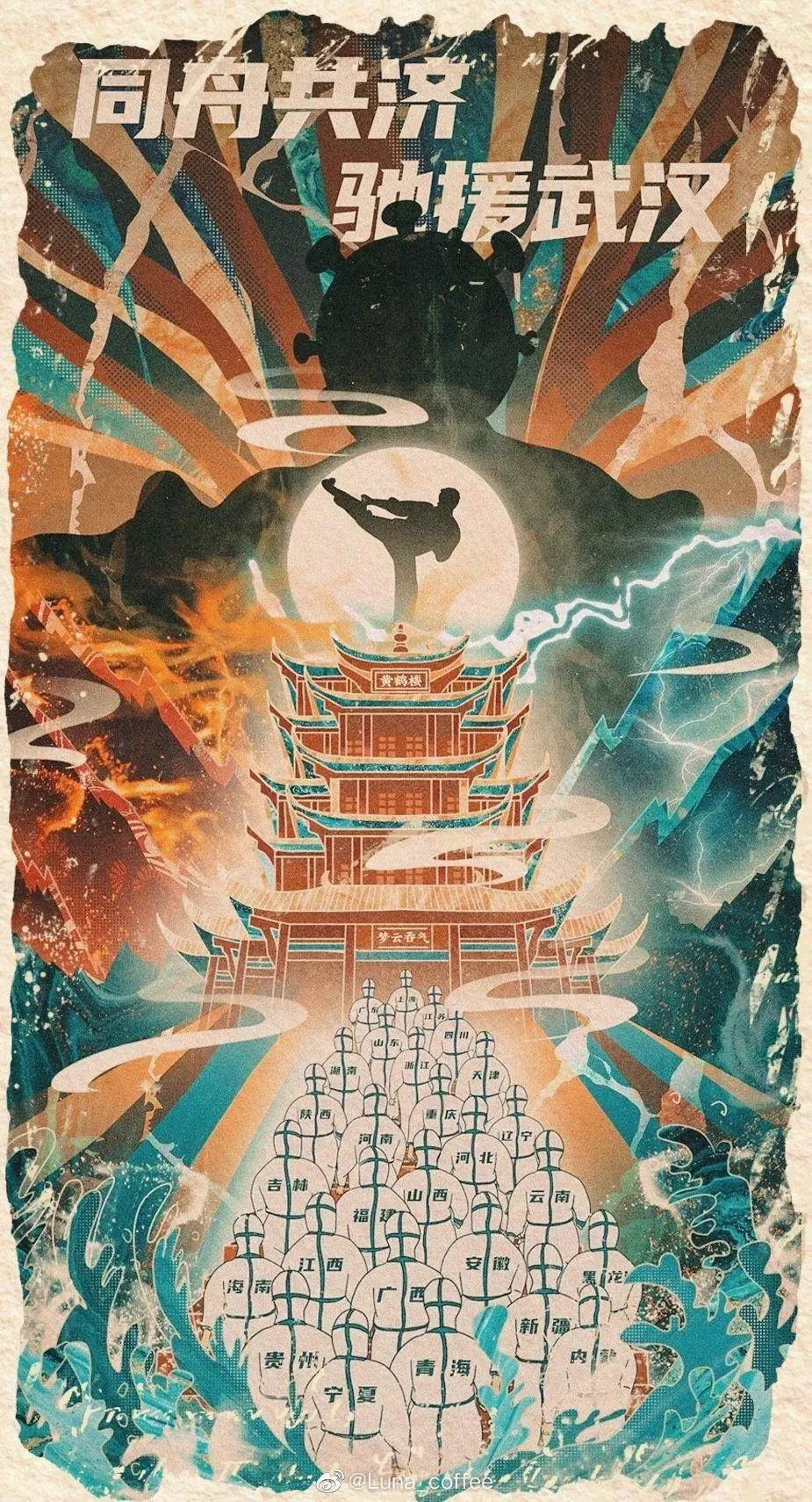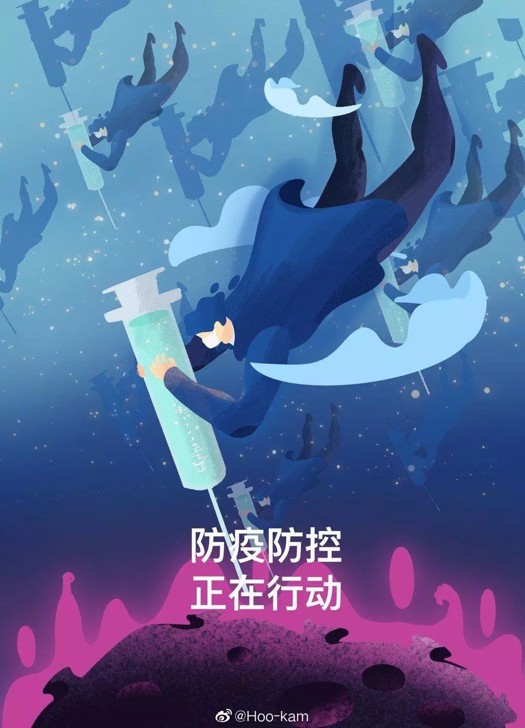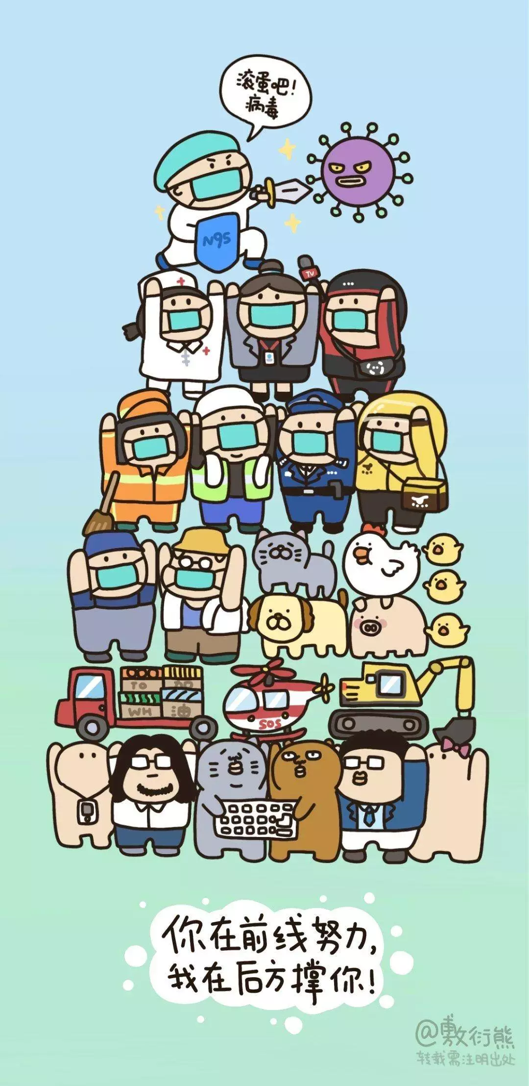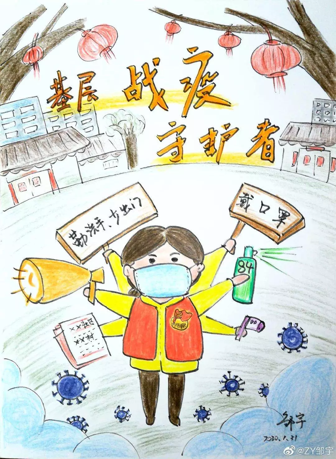 在央视网(@小央视频)发起的话题#滚蛋吧新冠肺炎#和网友自发的#武汉加油#等话题中,网友们产出了100+张优秀海报(插画/条漫等)为武汉加油!