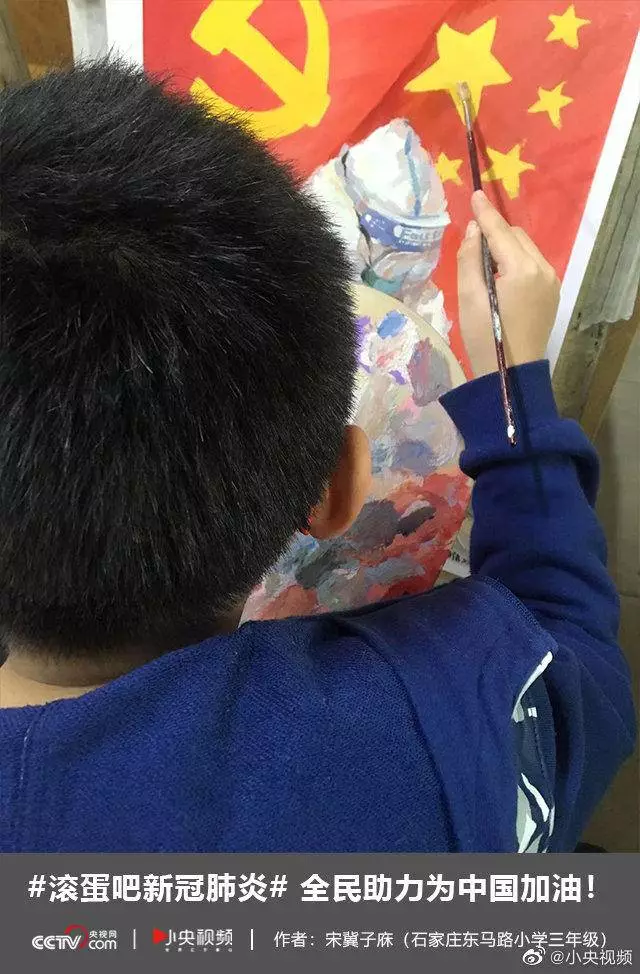 这幅画名为《致敬•相信》,作者是来自石家庄10岁的三年级小朋友宋冀子庥,这幅画也是小朋友对前线白衣卫士的致敬和祝福。