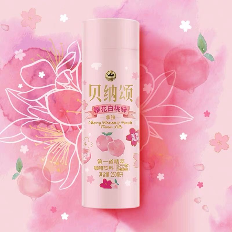 除了星巴克和雀巢,贝纳颂也推出了春日限定「樱花白桃味拿铁」,这包装颜值有点高啊。