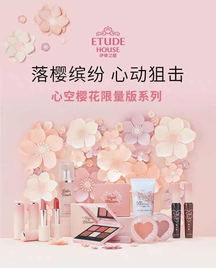 伊蒂之屋的心空樱花限量版系列彩妆,从内到外都是粉嫩的少女色,满满的少女元气。