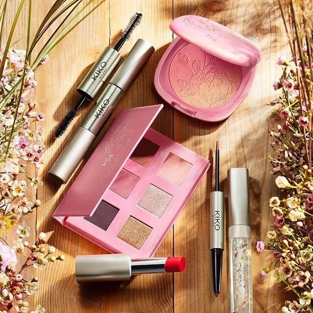 开价之王KIKO2020年春季樱花系列,单品包括眼影盘、腮红、修容、睫毛膏、眼线、唇膏和唇蜜等。