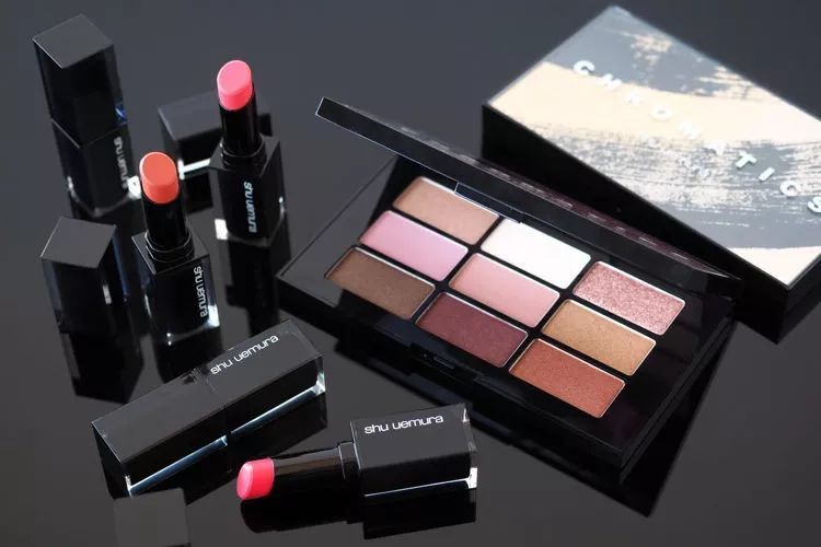 植村秀的2020樱花系列Sakura Nude Collection,包括九色眼影盘、腮红和小黑方唇膏等。