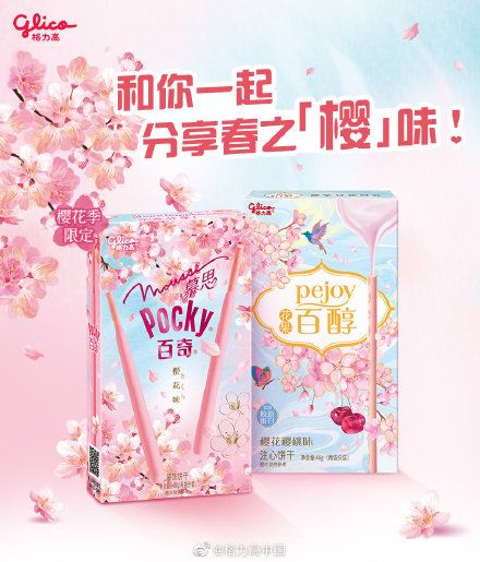 春天樱花限定零食怎么会少了Pocky呢,「樱花慕思百奇」和「樱花樱桃百醇」和你分享春之「樱」味。