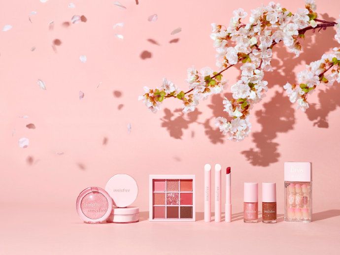 每年春天都会推出樱花限定的悦诗风吟,今年打造了以棕粉色调为主的限定系列,包含眼影盘、唇膏、高光和指甲油等产品。