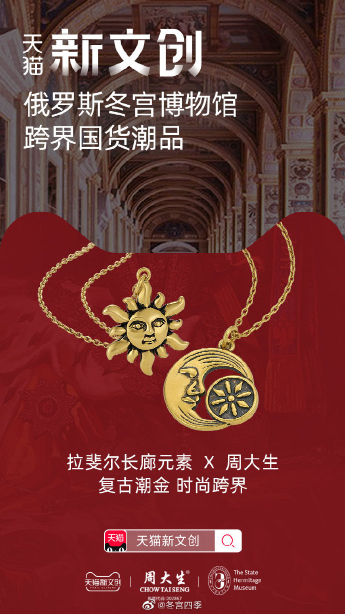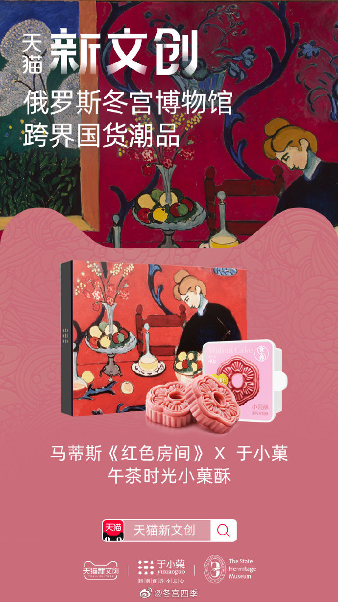 3月29日,天猫正式官宣世界四大博物馆之的艾尔米塔什(冬宫)博物馆跨界联名首秀,发布了一系列中俄文创。