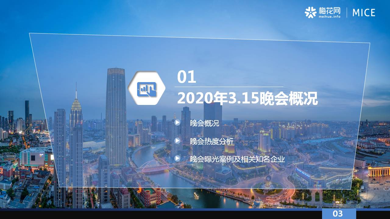 2020年3.15晚会于7月16日上周四举办。此次晚会的主题是“凝聚力量 共筑美好 ”,本次晚会也涉及到多家大型企业,例如汉堡王、万科、上汽五菱通用、趣头条等等。梅花网为此制作了案例总结报告并邀请多位业内专家给出独到观点。感兴趣的同学不妨进来