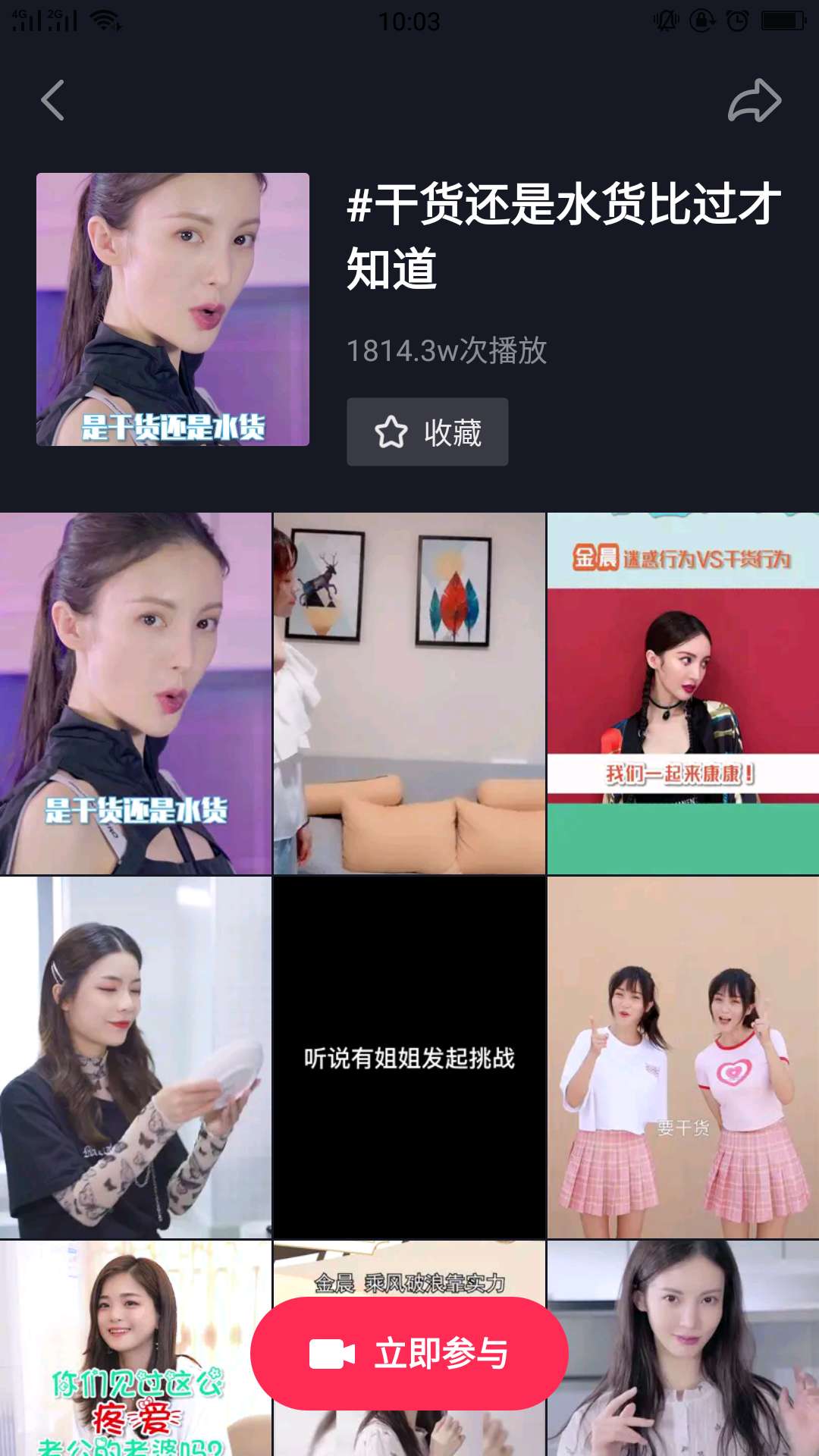 在金晨发出#干货还是水货比过才知道#的挑战宣言之后,迪北北、施梦露、偷心萝莉等抖音粉丝众多的大v用户纷纷联动,推拍属于自己干货风格的短视频迎接挑战,将#干货还是水货比过才知道#挑战热度进一步传递,引发素人跟拍模仿,矩阵式二次传播形成营销爆款。