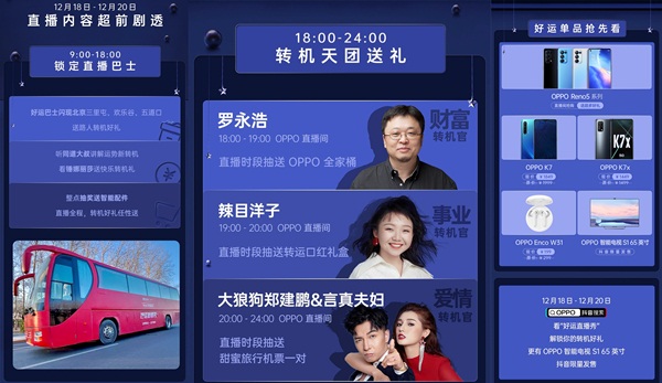 产品开售阶段,OPPO即推出「好运直播巴士」,将直播间搬到大巴上,为城市普通人送好运给好礼。