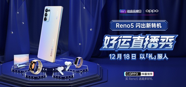 OPPO联合"抖in超级品牌日"完成抖音站内整合营销事件--「Reno5闪出新转机好运直播秀」。