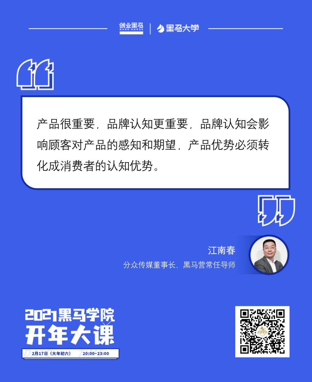 分众传媒董事长、黑马营常任导师江南春带来“如何成为消费者心智中的首选”的分享主题。