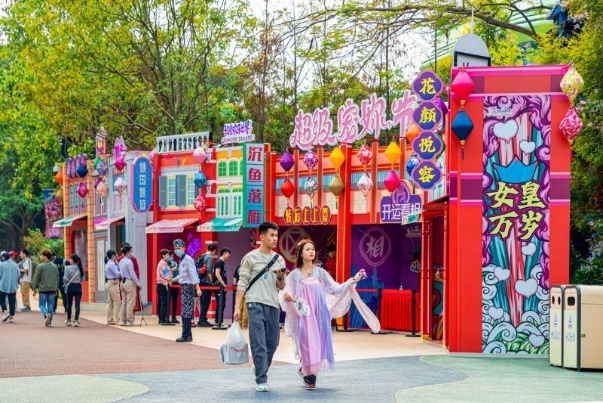 活动期间,广州长隆欢乐世界园重磅打造“国潮文化超级宠妳节”主题活动,活动区域设有多个打卡互动点,热闹的花卉海洋区、国潮大街潮流玩乐区,丰富有趣的DIY区、特色茶艺小吃区,还有古色古香国潮变装市集以及彩妆专区。