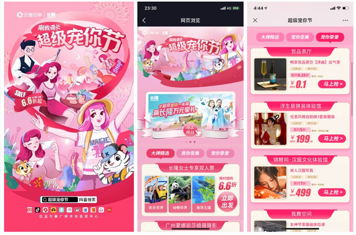 长隆女士专享双人票6.6折起、2.2折高级定制烫染套餐、9.9元婚纱大礼包、0.1元网红茶饮……活动主办方精选超30多家本地女性消费优质品牌商家,覆盖本地丽人吃喝玩乐四个福利维度。超级宠你节抖音主会场云集全广佛大牌商户以超值折扣激发更多“时尚妈妈”、“贴心闺蜜”、“职场女王”在一年一度的女神节宠爱自己,更借助抖音话题的带动下收获4.8亿次播放量,引发强烈社会消费共鸣。
