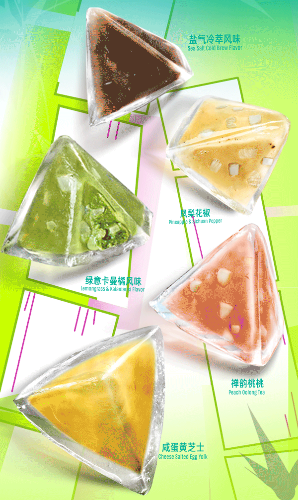 绿意卡曼橘对应的是夏日清爽,凤梨花椒则是酸甜新奇混搭~
