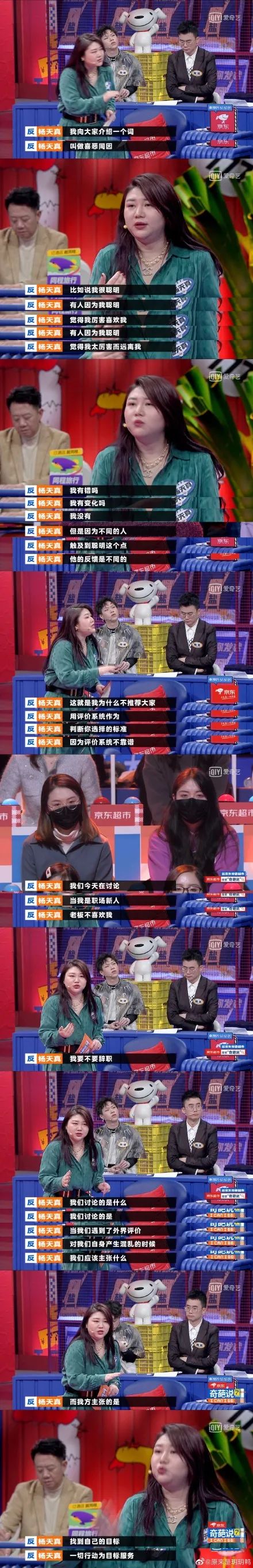 网上吐槽杨天真的不少,有说她表情像doge的,有说她作为“大码模特”不够美的,有说她虽然是审美多元化的代表,但看着很自负的……对赵小棠和陈漫倒是几乎清一色的好评。