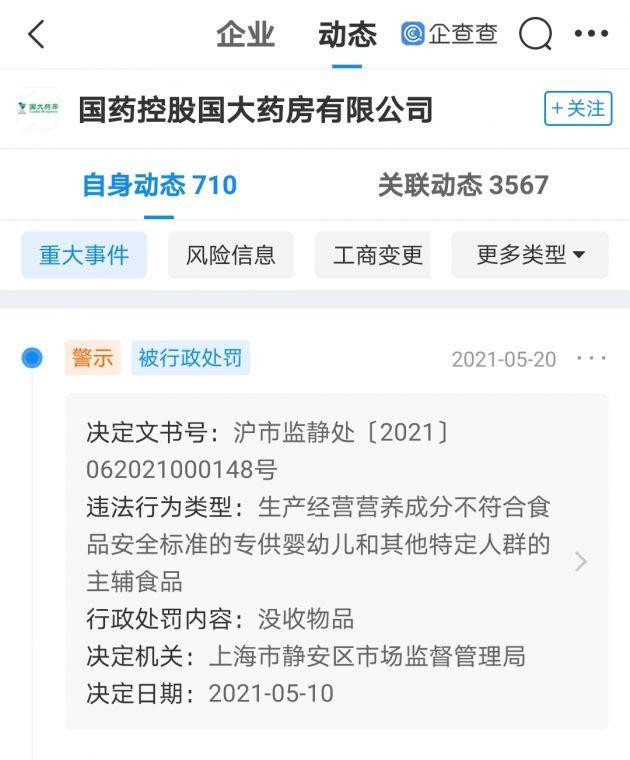 |国大药房因专供婴幼儿等主辅食品不符安全标准被行政处罚|