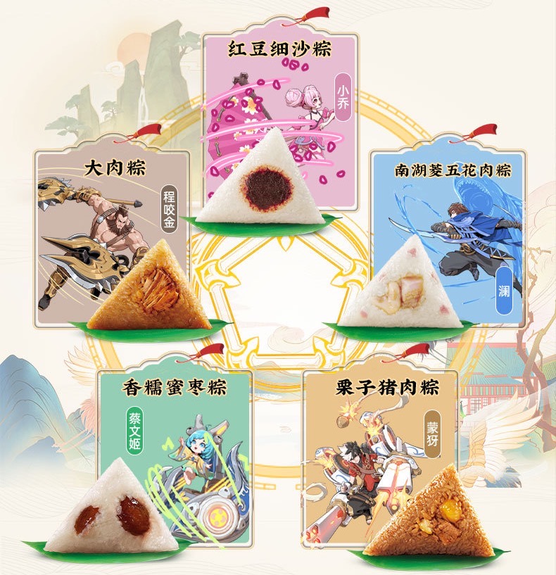 礼盒中包含五种口味的粽子,分别对应峡谷中的五位英雄人物,这里面有你的本命吗?