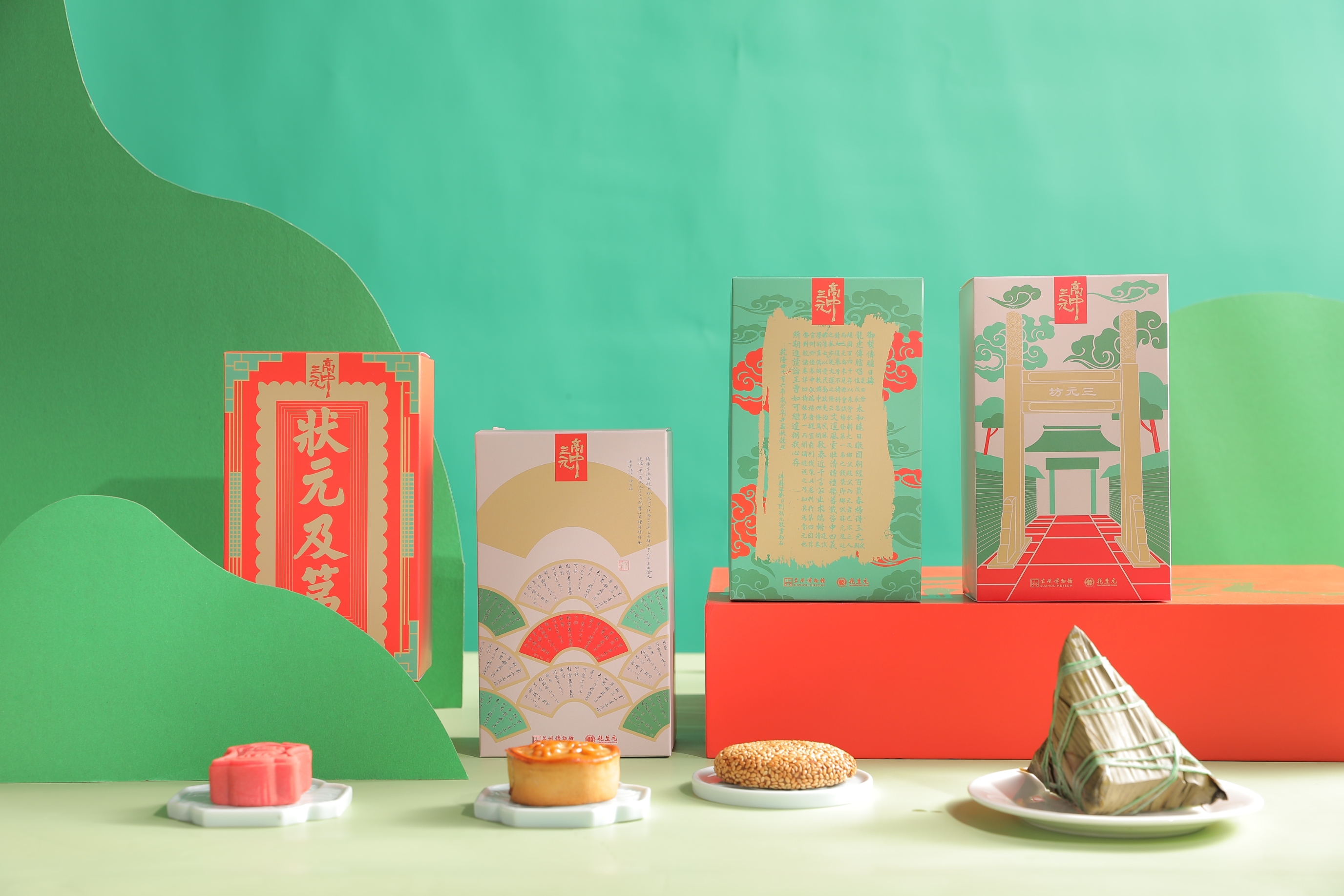 苏州乃是“状元之乡”,借着六月高考和端午节这两个时间节点,苏州博物馆与乾生元联名推出文创礼盒“高中三元”——其中包括生元麻饼、定胜糕和五色粽。