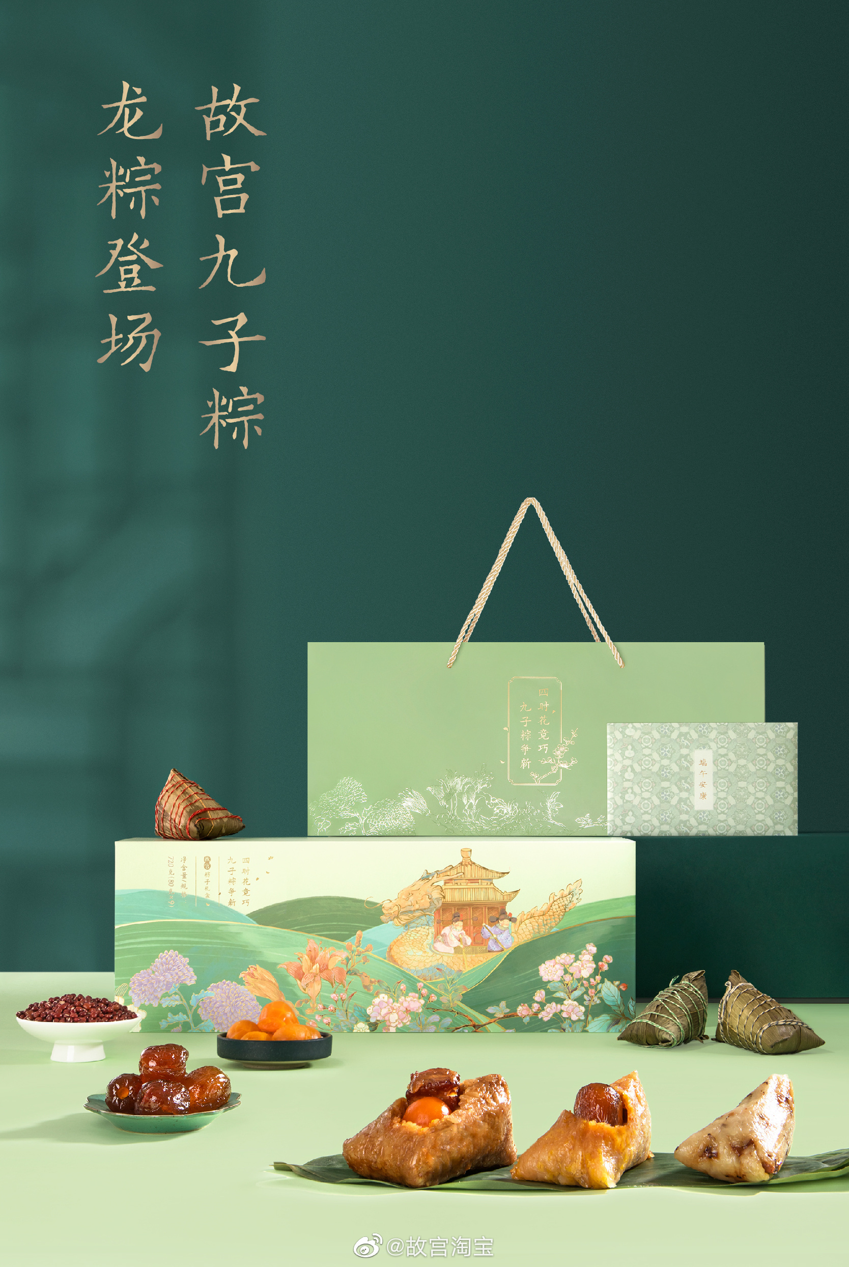 老牌网红@故宫淘宝 联手杭州老字号品牌@知味观 ,推出了一款好吃又精致好看的【故宫九子粽礼盒】。