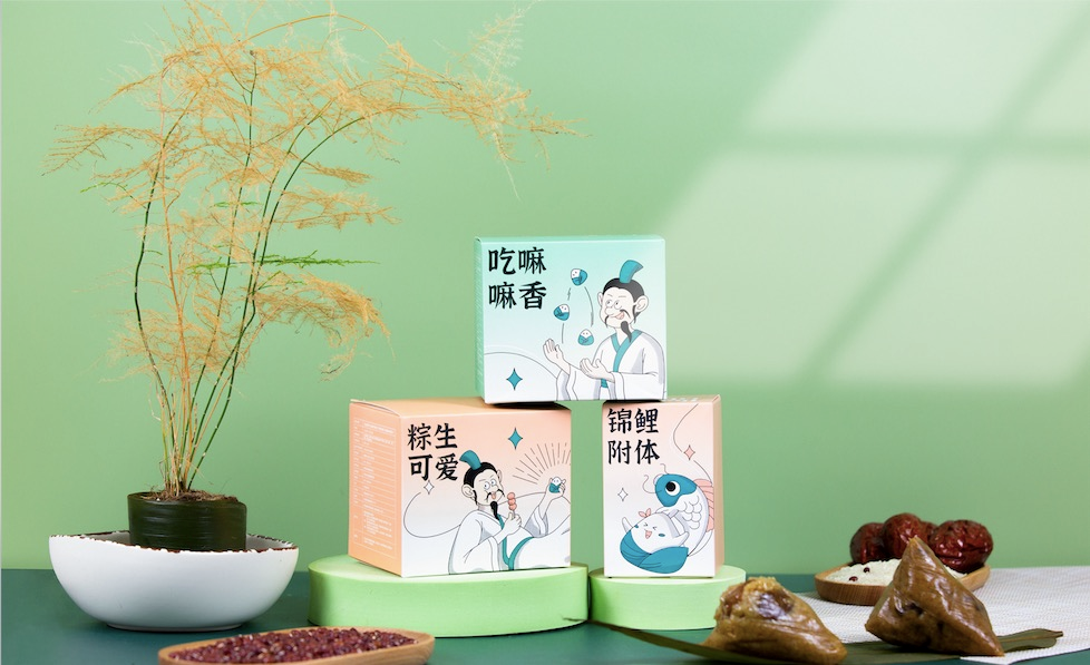 每个粽子独立包装,并搭配趣味的插画设计及文案,潮感十足!