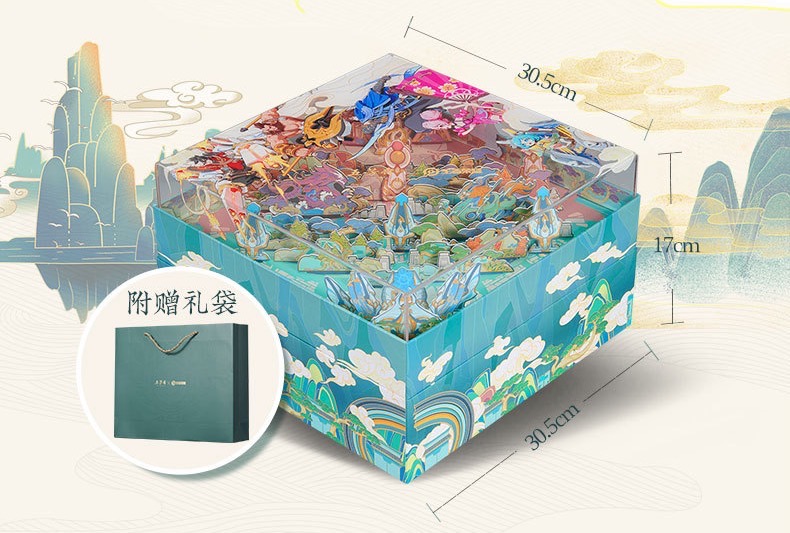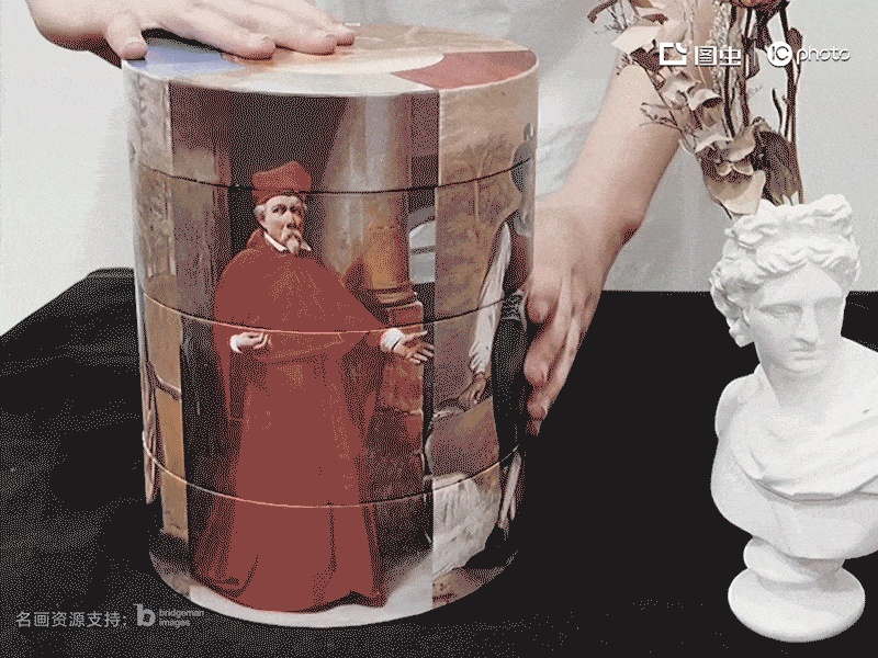 除了吃,还能玩起来!笼屉形式的三层可扭转礼盒,可将名画人物扭转拼贴,妙趣横生!