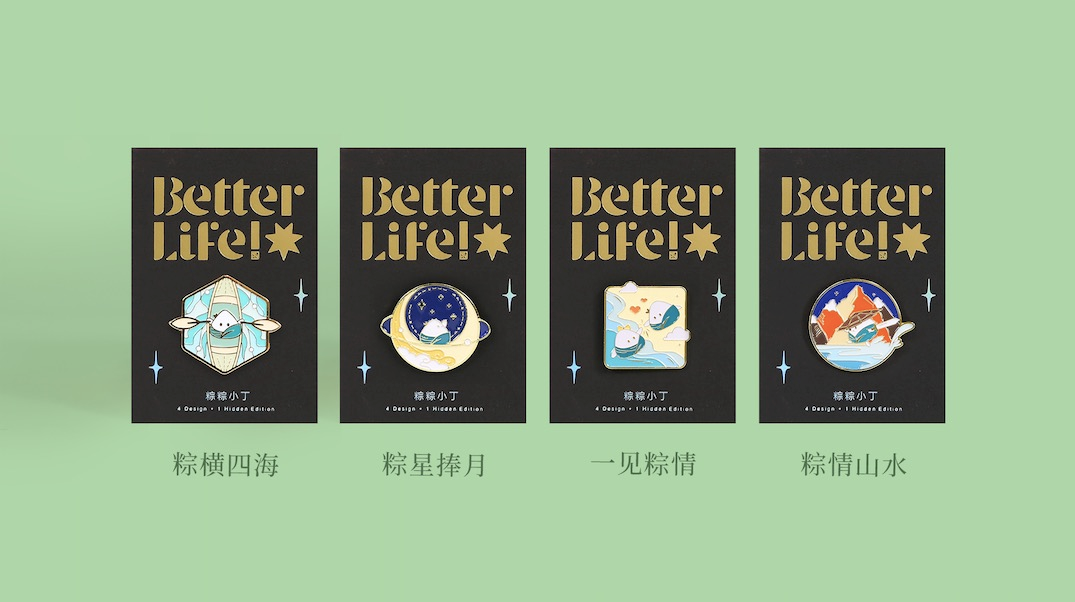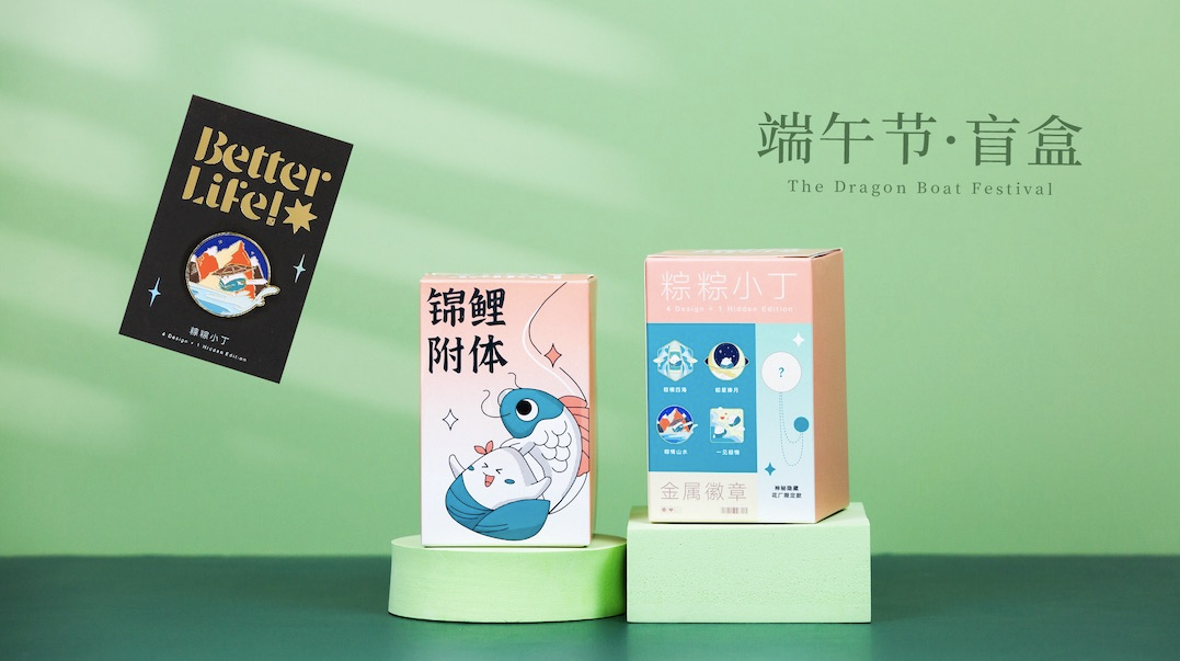 值得一提的是,礼盒还引入了盲盒玩法,配置了丁小粽金属徽章2枚(徽章设定了4个普通款+1个隐藏款),员工间可互相交换。