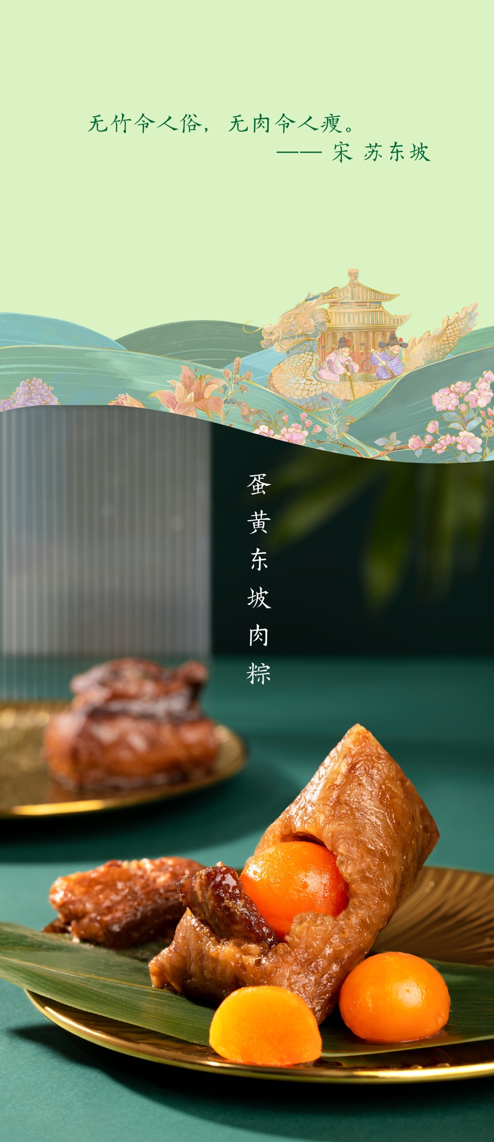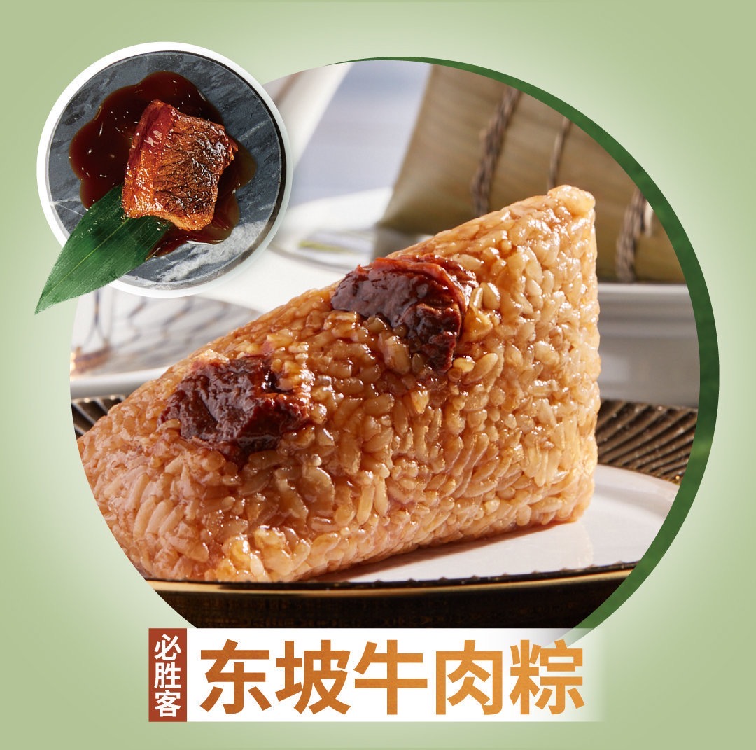 还是熟悉的口味——黑叉烧咸蛋黄粽和东坡牛肉粽,复刻星级粤菜,使用西式牛肉,传说中有着国宴范儿的粽子~