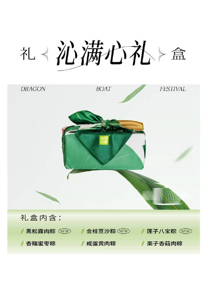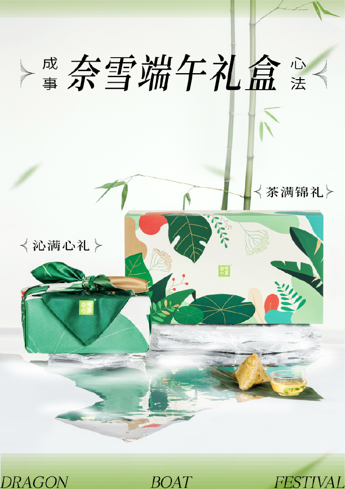 另一个网红奶茶品牌奈雪的茶则也没闲着,推出「茶满锦礼」、「沁满心礼」两款端午礼盒。