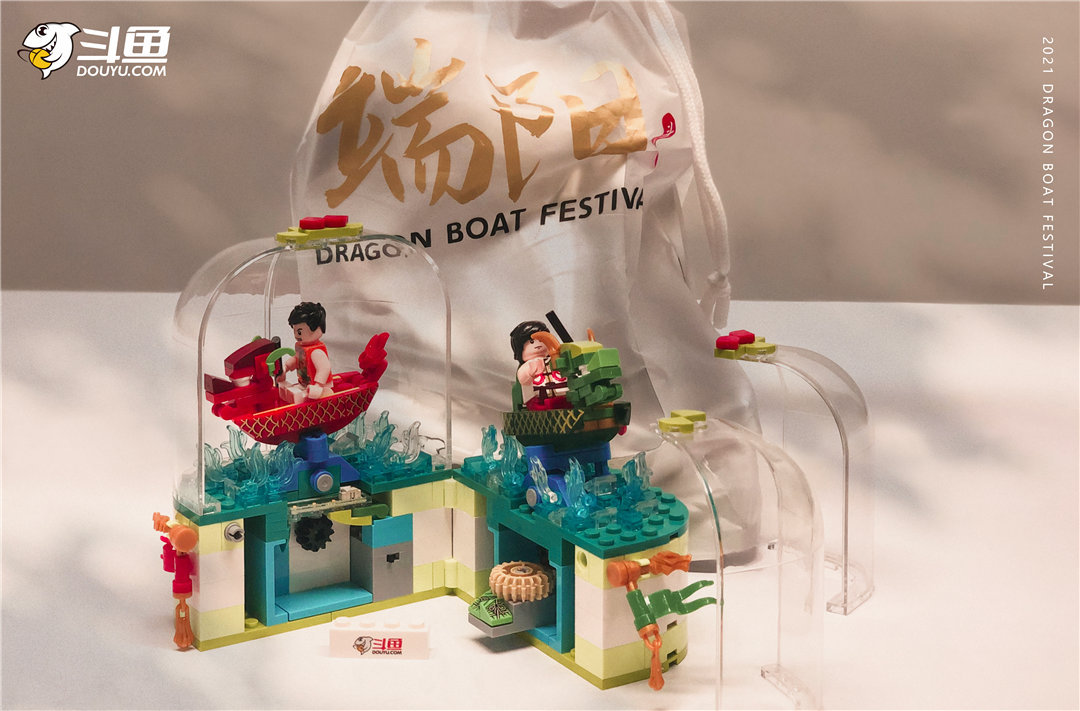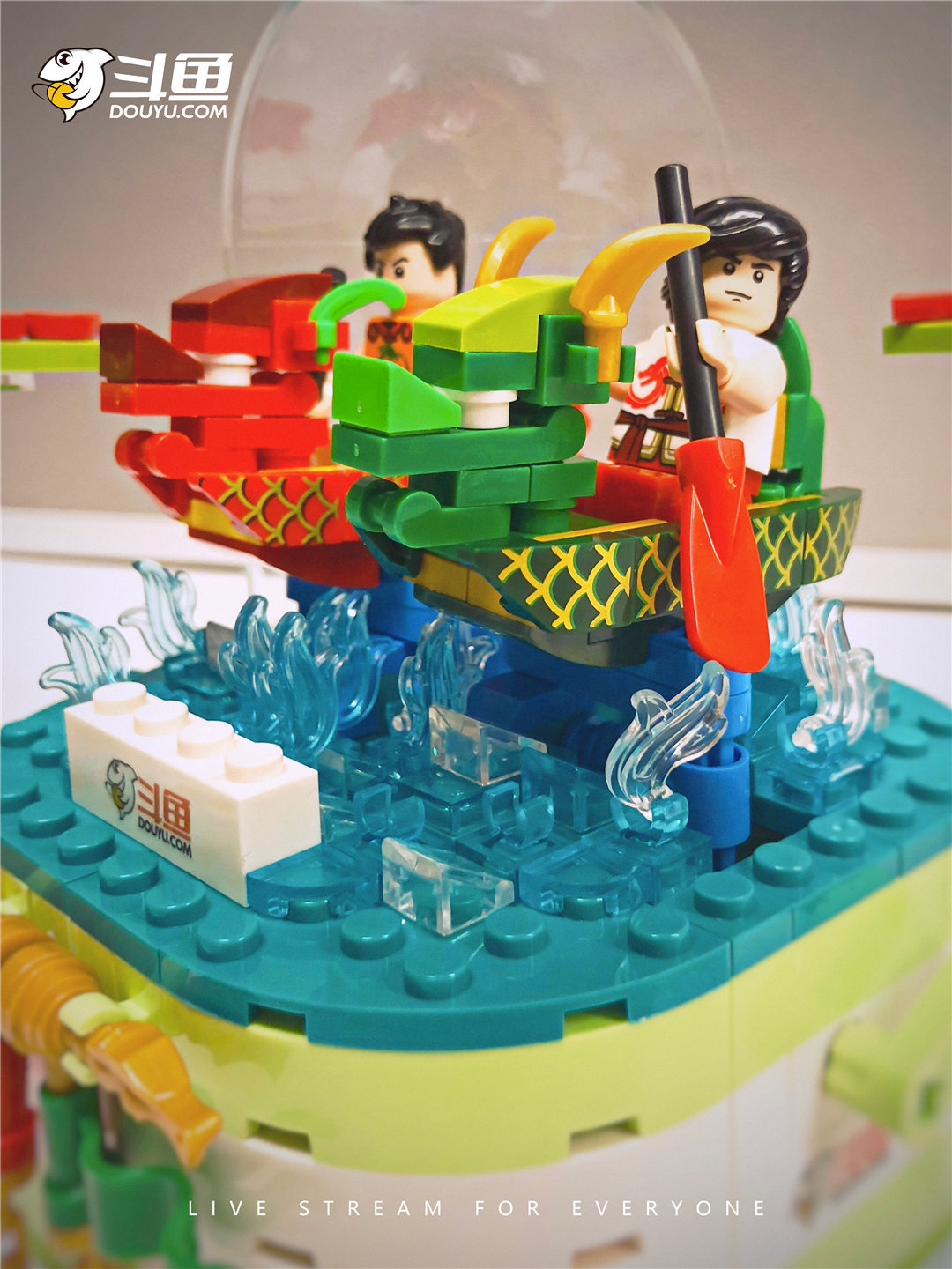 套装中的重点是这个斗鱼版“赛龙舟”积木,需要自己动手拼起来的~