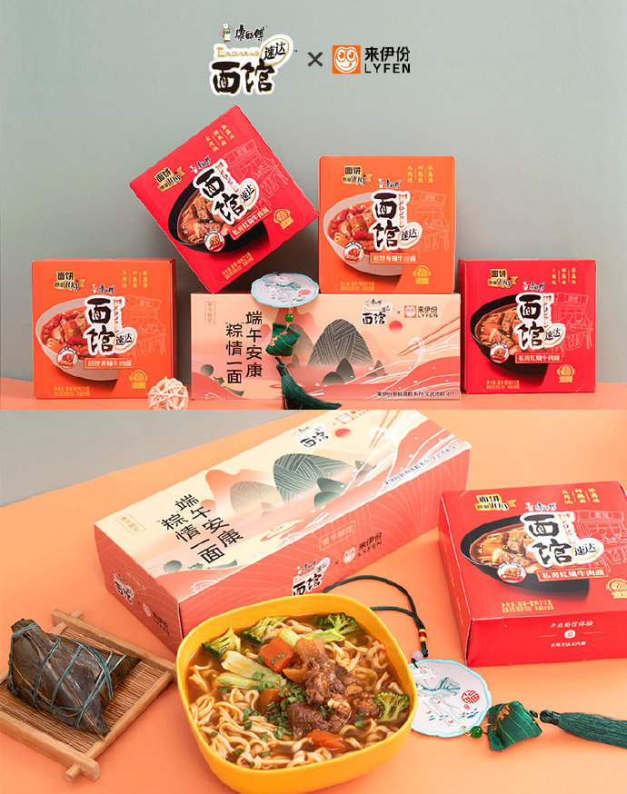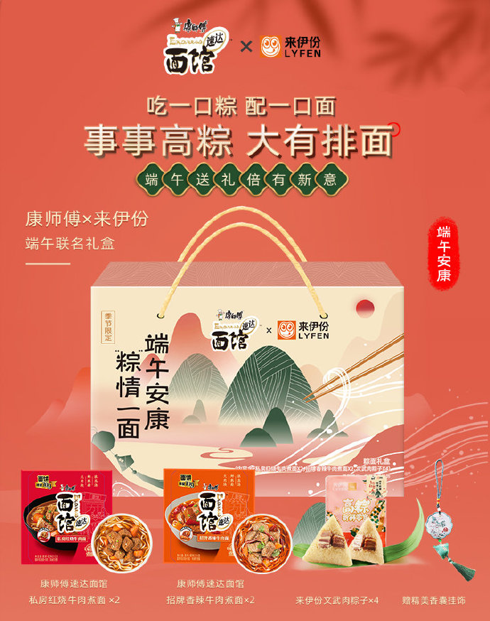 无独有偶,搞联名的还有康师傅x来伊份,这次的端午礼盒主题为#粽情一面 端午安康#。