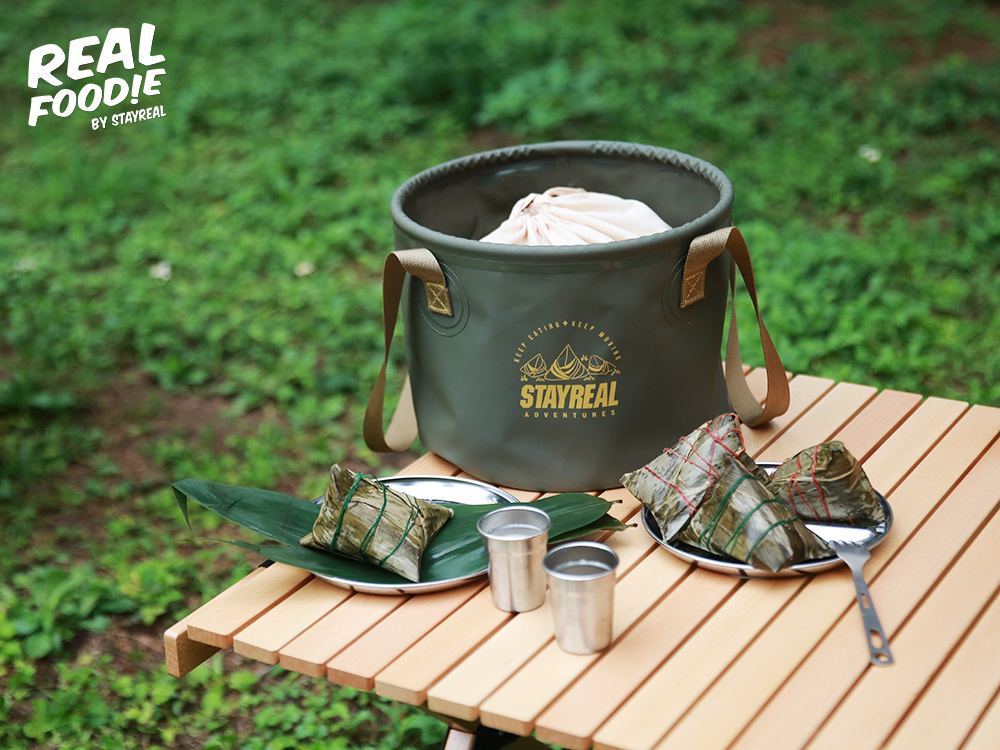 本次主打“一起拥抱自然,感受OUTDOOR轻野生活”的概念,礼袋以户外多功能折叠桶的样式设计,搭配龙舟帆布收纳袋,还有口味绝绝子的甜粽咸粽,让你的端午出游更有滋有味。