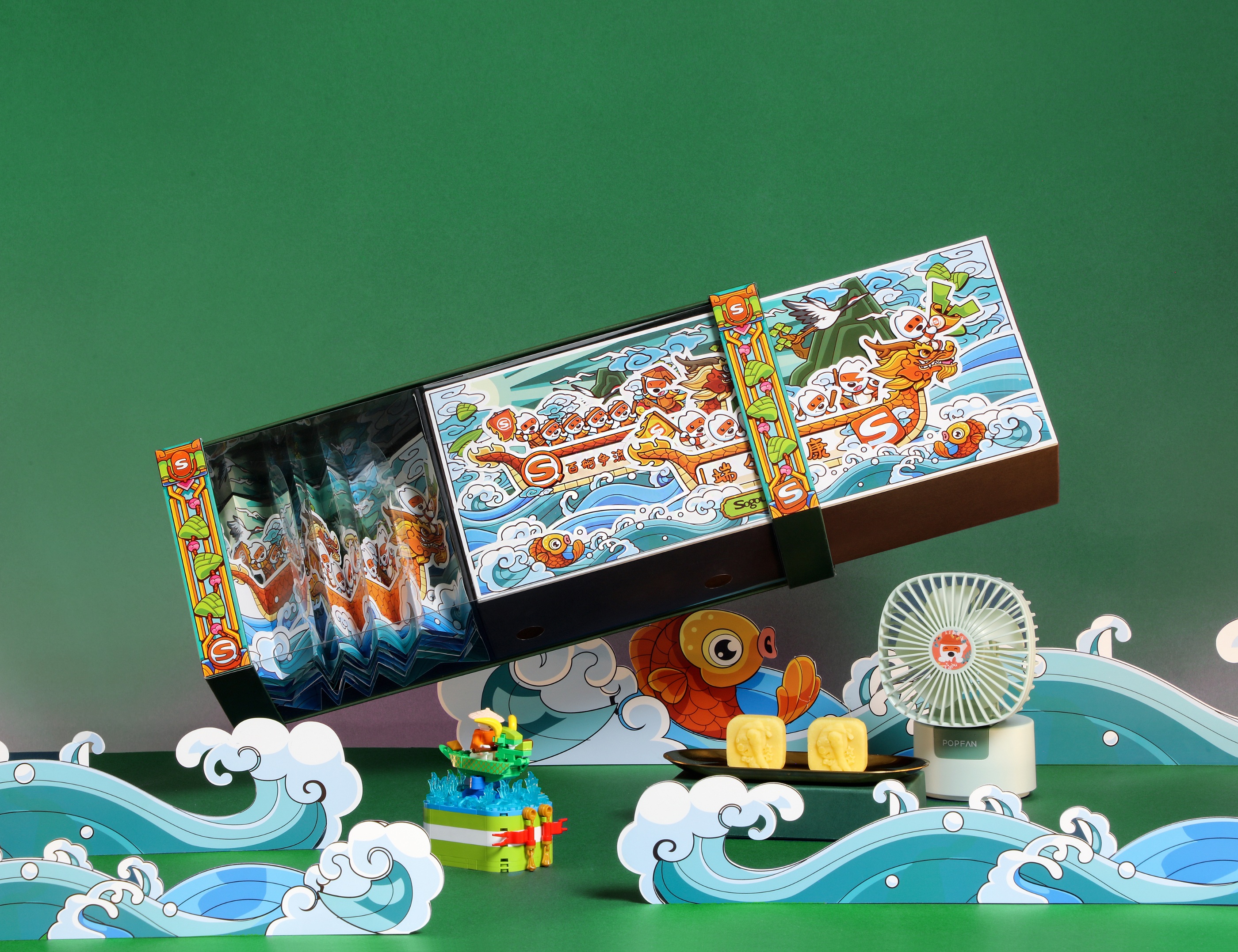 礼盒中还附赠特制香囊和赛龙舟桌游