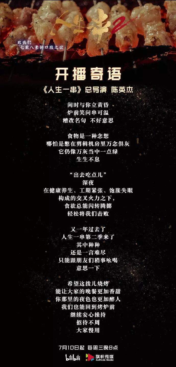 第二季开播前,总导演陈英杰还给大家发了一段《开播寄语》: