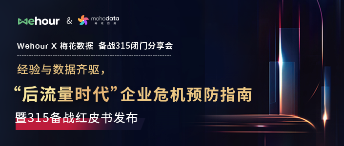 为了应对315晚会可能带来的危机,此前梅花数据携手Wehour举办了闭门分享会,并发布2022新版《315备战红皮书》(需要的读者可以点击此处链接回顾)。